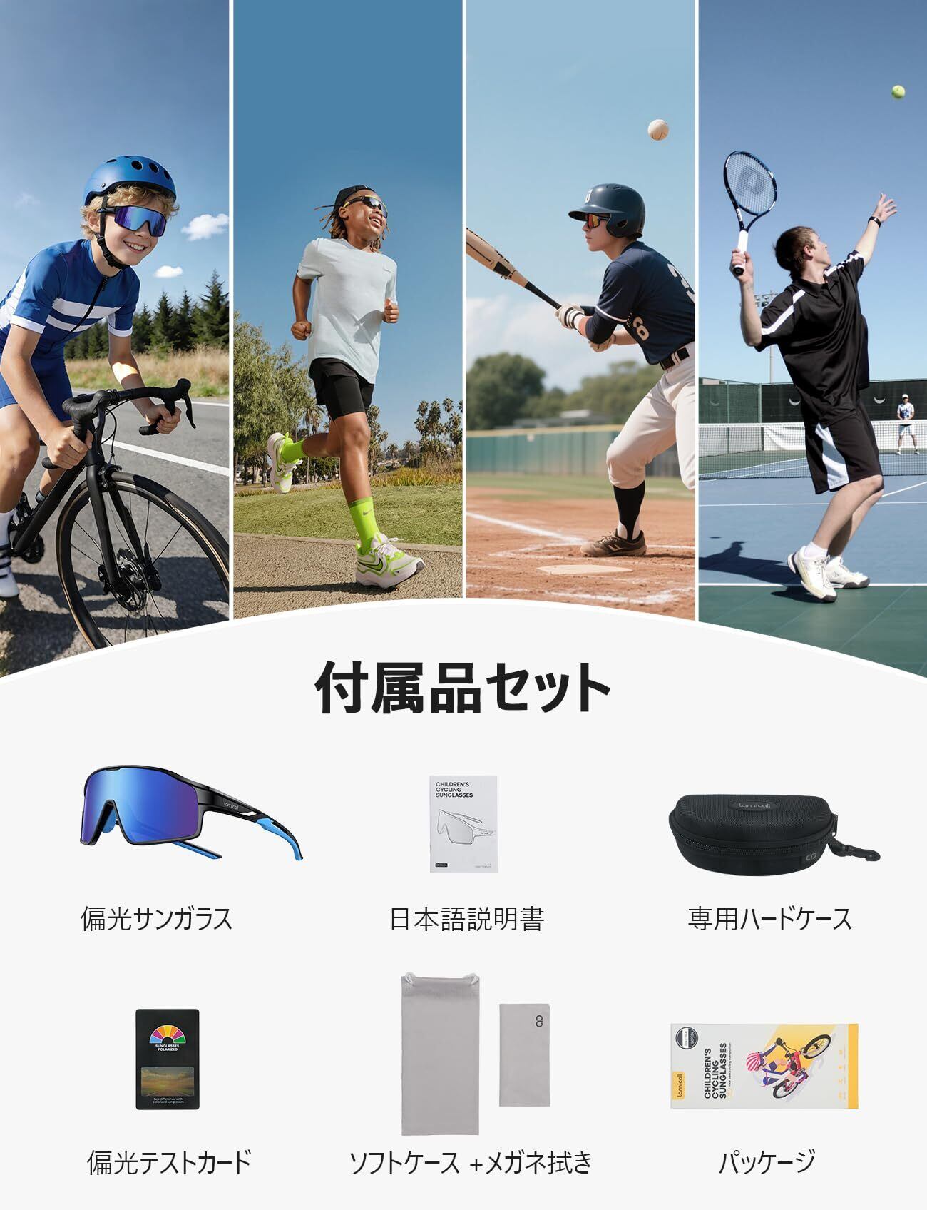 【偏光レンズ・クリアな視界】高品質なTAC偏光レンズを搭載し、水面や路面、雪地など表面からのまぶしい光や散乱光を効果的に消除され、鮮明な視界を提供します。子供がアウトドアで遊んだりトレーニングしたりする際、視覚の疲れを軽減し、快適な視覚体験を楽しむようにします。