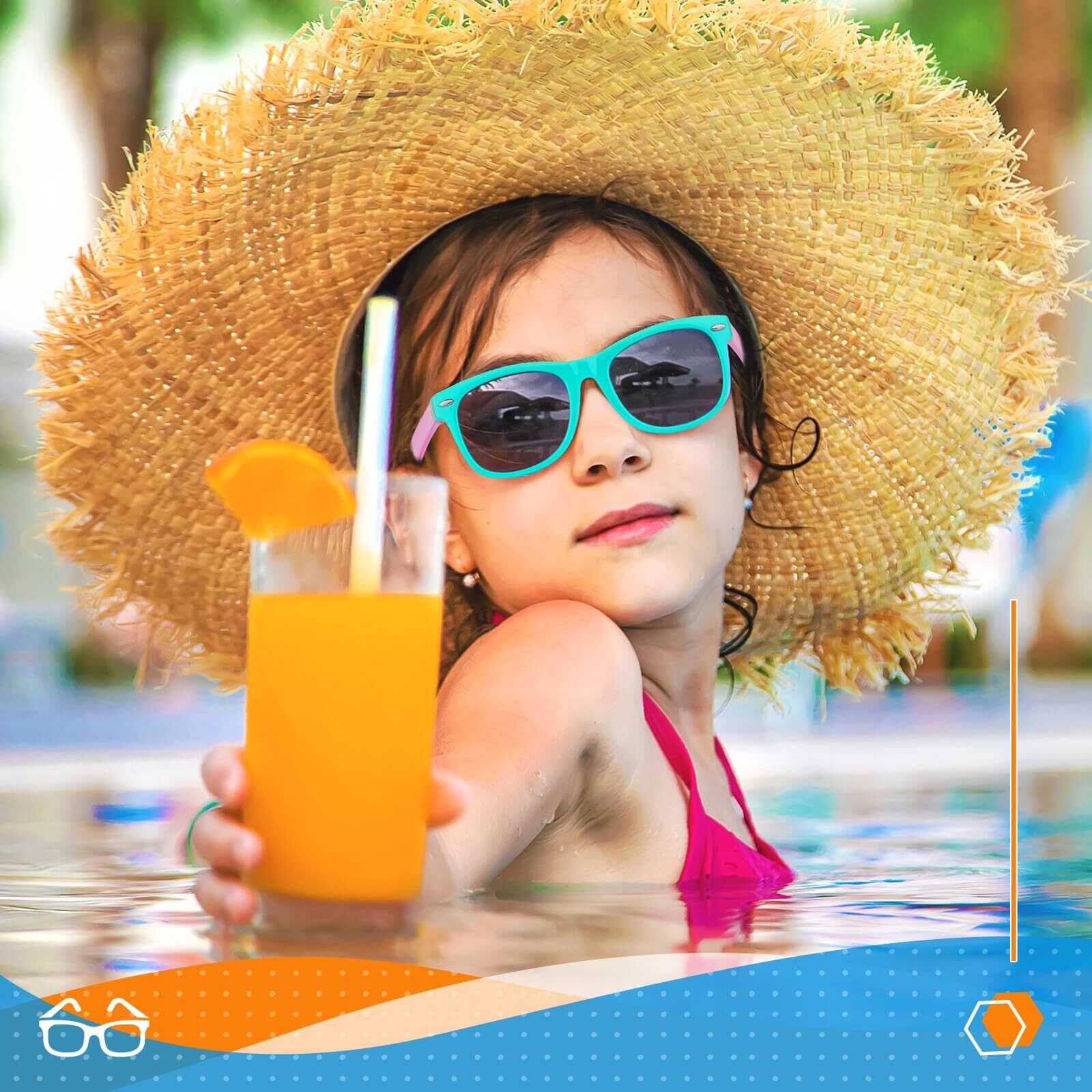 一日中快適なフィット感 - 痛くない、ずれない、ただの快適さ!軽量でゴム製のサングラスは、3歳から10歳の子どもたちにぴったりフィット。走ったり、ジャンプしたり、お昼寝したりしても、ずっと快適に使えます