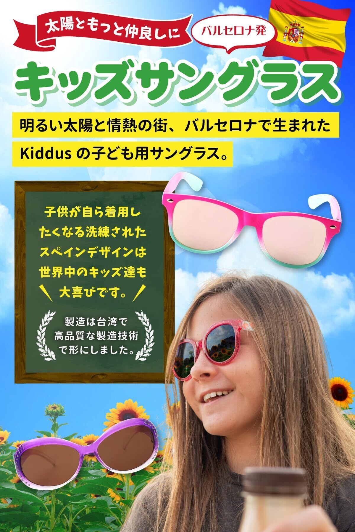 【新着商品】[Kiddus] キッダス 子供 キッズ 小学生 サングラス 6歳から12歳 男の子 女の子 子供用 UVカット 紫外線カット UV400 登山 キャンプ 釣り 海 スポーツ アウトドア 子供用サングラス