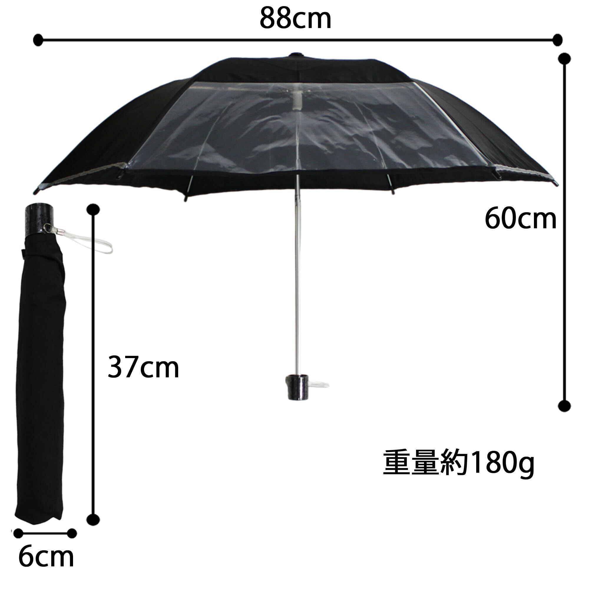 サイズ:約6×6×37cm/重量:約0.18kg/開いた時の傘の直径:88cm/伸ばした時の全長:60cm