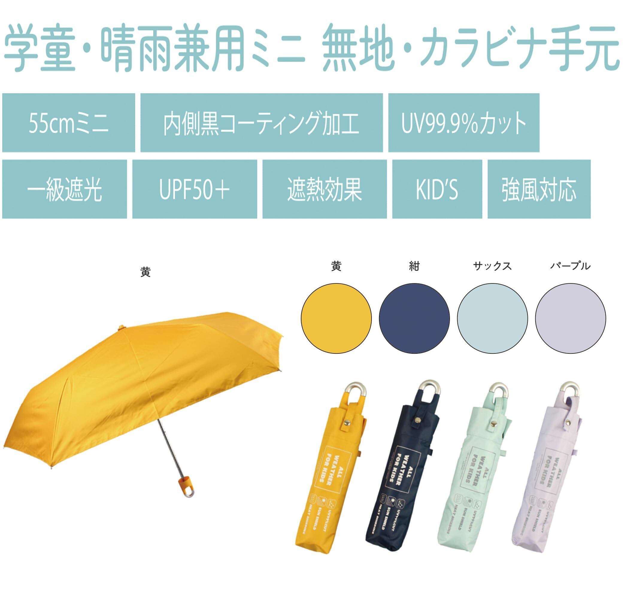 折りたたみ傘 日傘 晴雨兼用 子供 キッズ 便利 カラビナフック 親骨 55cm 内側コーティング UV99.9%カット 一級遮光 UPF50+ 遮熱 軽量 アルミ 丈夫 ファイバー骨 学校指定 無地 サックス