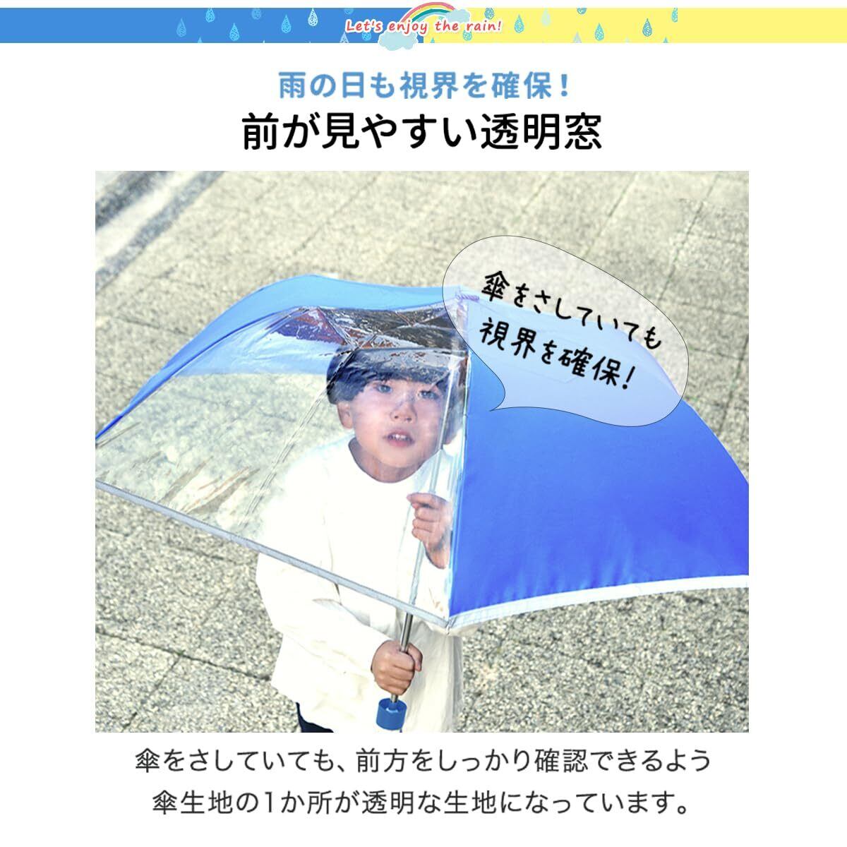 【前が見やすい透明窓】 傘をさしていても、前方をしっかり確認できるよう傘生地の1か所が透明な生地になっています。 【暗い場所でも安心、反射テープ付き】 傘のフチには、ぐるりと反射テープが貼られています。車やバイク、自転車のライトに反射してドライバーが認識しやすくなり、暗い場所でも安心です。