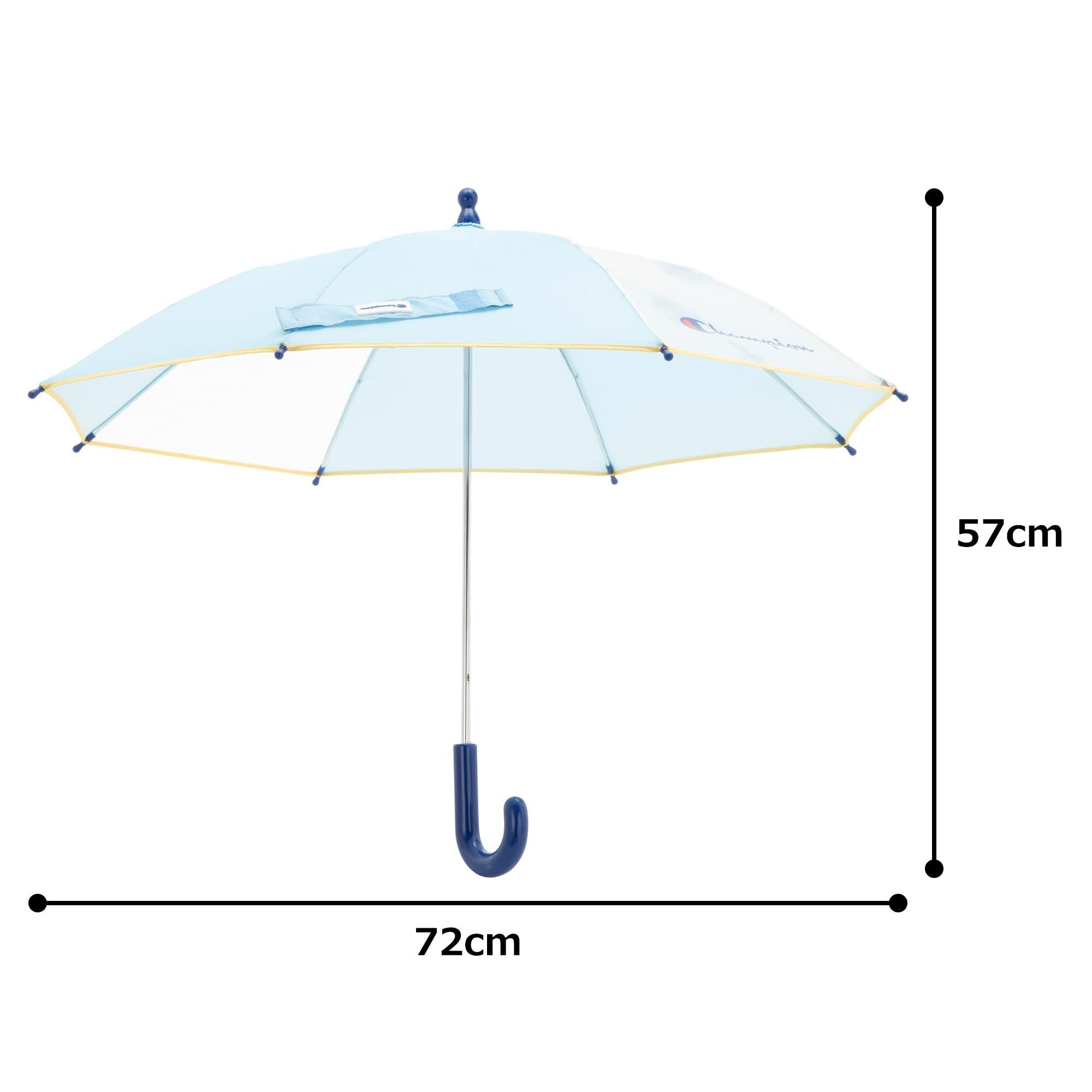チャンピオンのベビー用の手開傘です。親骨、受骨に折れにくいグラスファイバー骨を使用しております。前が見える透明窓付きです。