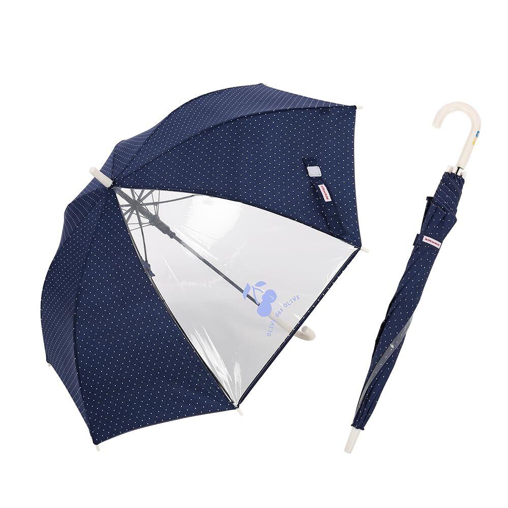 小川(Ogawa) キッズ長傘 ジャンプ式 55cm 8本骨 OLIVE des OLIVE ネイビー ドット ワンポイントロゴ 抗菌手元 透明窓付き はっ水 70993
