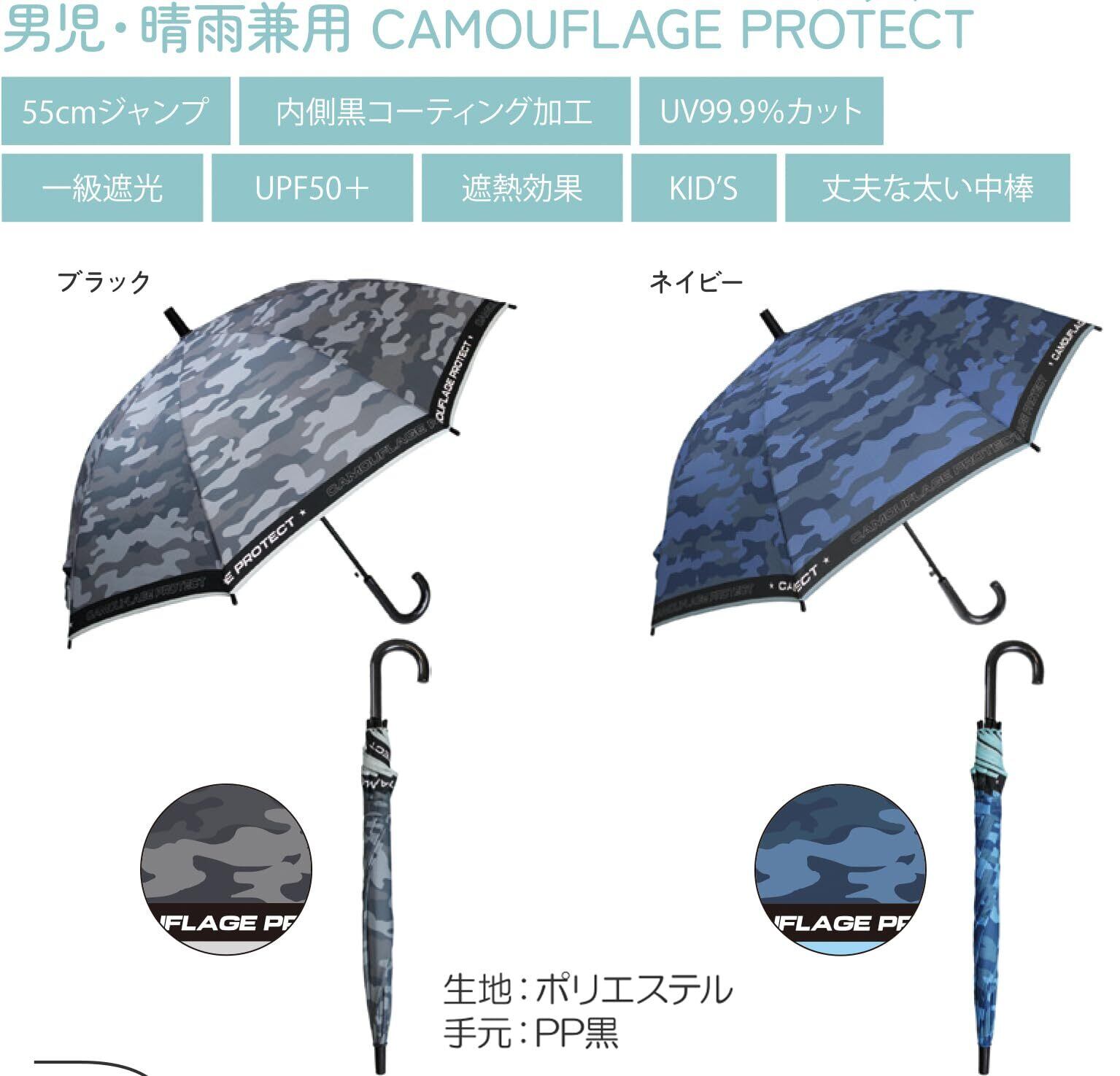 晴雨兼用 長傘 日傘 子供 児童傘 男の子 親骨 55cm 内側コーティング UV99.9%カット 一級遮光 UPF50+ 遮熱 丈夫 中棒 おしゃれ 迷彩 ネイビー