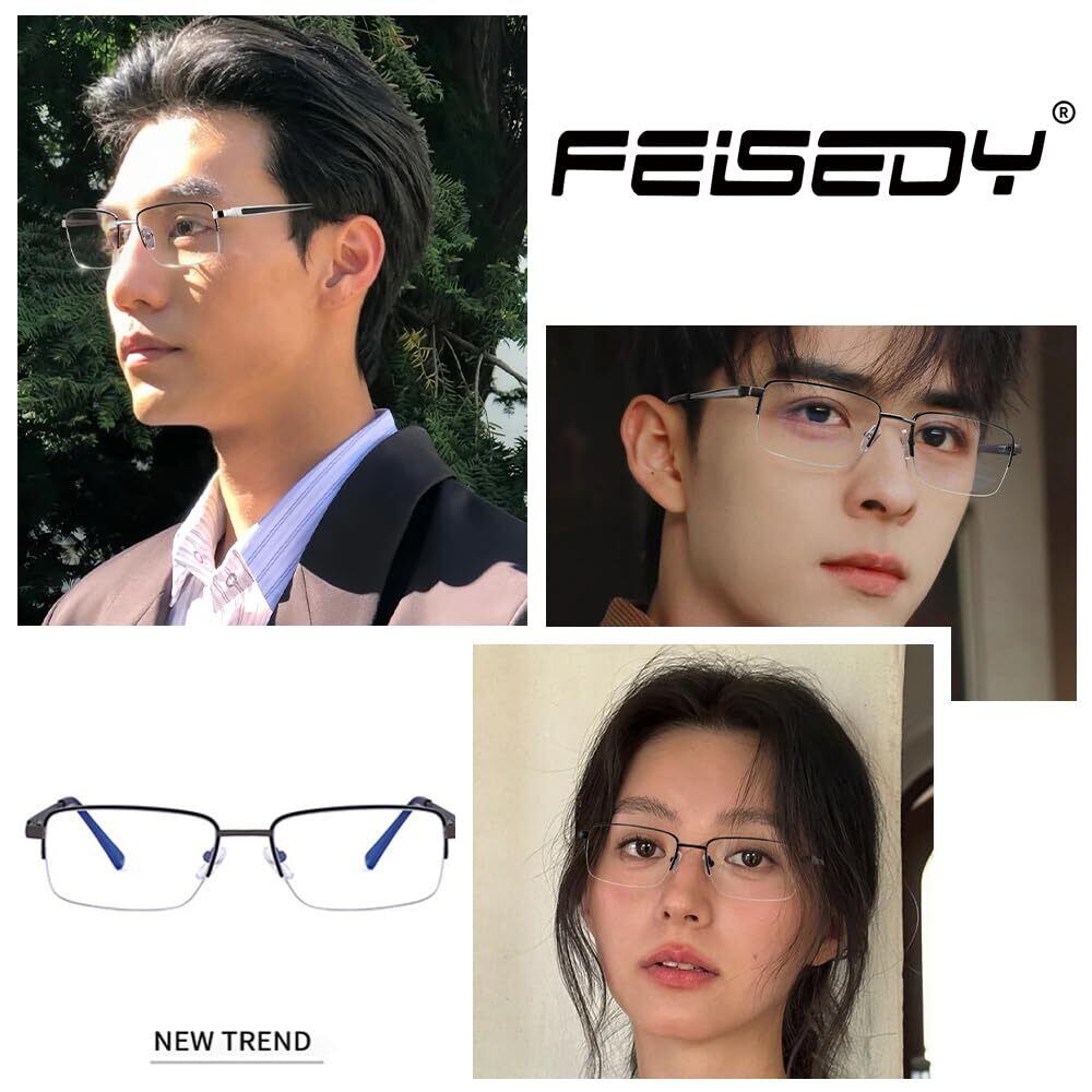 [FEISEDY] ブルーライトカットメガネ メンズ おしゃれ 伊達眼鏡 レディーズ 度なし 軽量 ハーフリム メタルフレーム スプリングヒンジ パソコン用 男女兼用 B1372