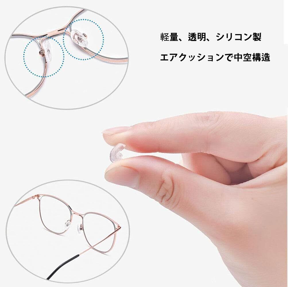 【柔らかいシリコン製鼻パッド】上質な柔らかいシリコン素材を採用しており、鼻跡が付きにく、錆びにくく、変色、変形もしにくく、アレルギーしません。鼻の痛みを解消し、汗によるずれ落ちを防止することができる眼鏡鼻パッドです。軽さと弾力性をアップし、通気性も良いです。