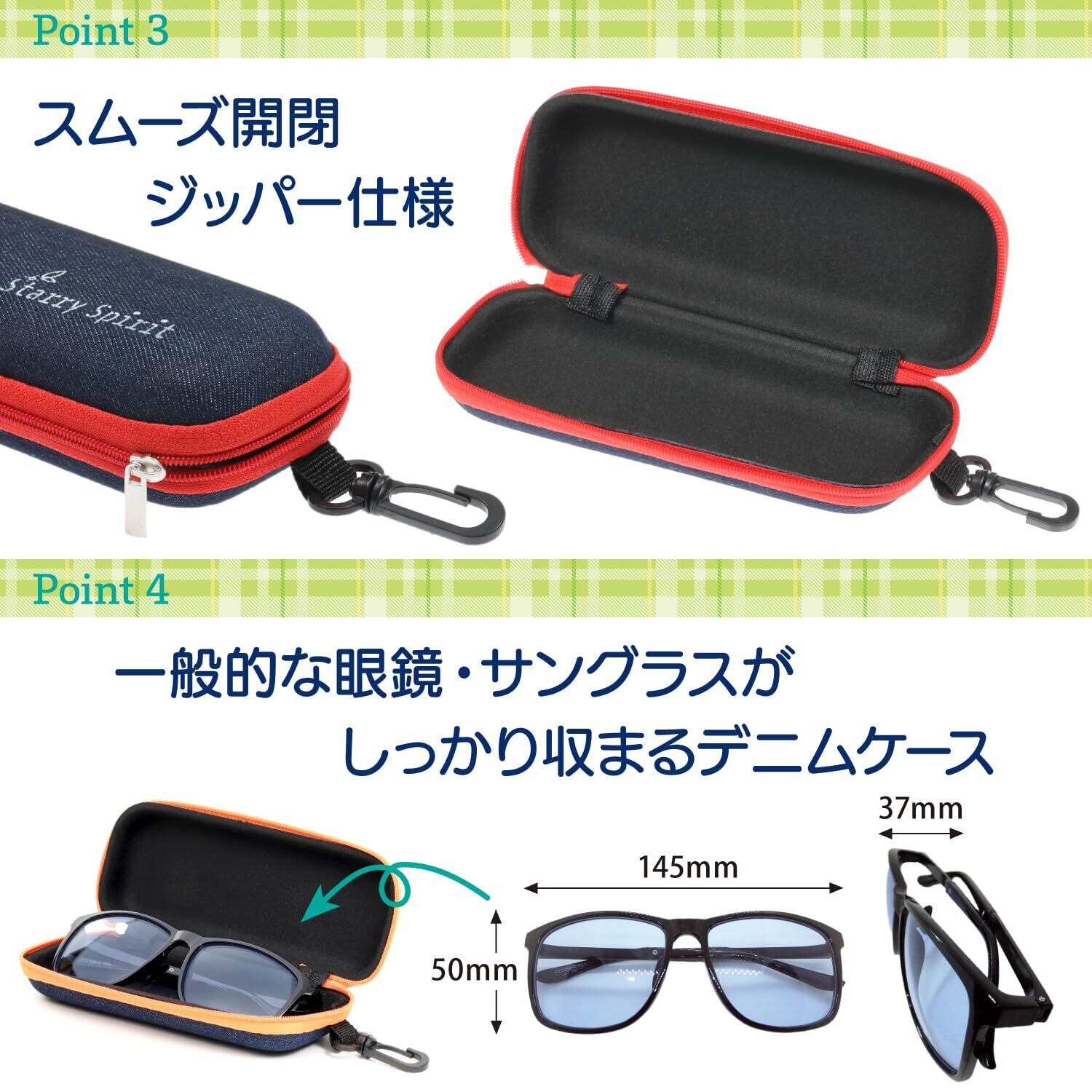 【2022最新】【StarrySpirit】デニム メガネケース 眼鏡ケース サングラスケース [軽量/丈夫/カラビナ付き] 男女兼用 SMK11