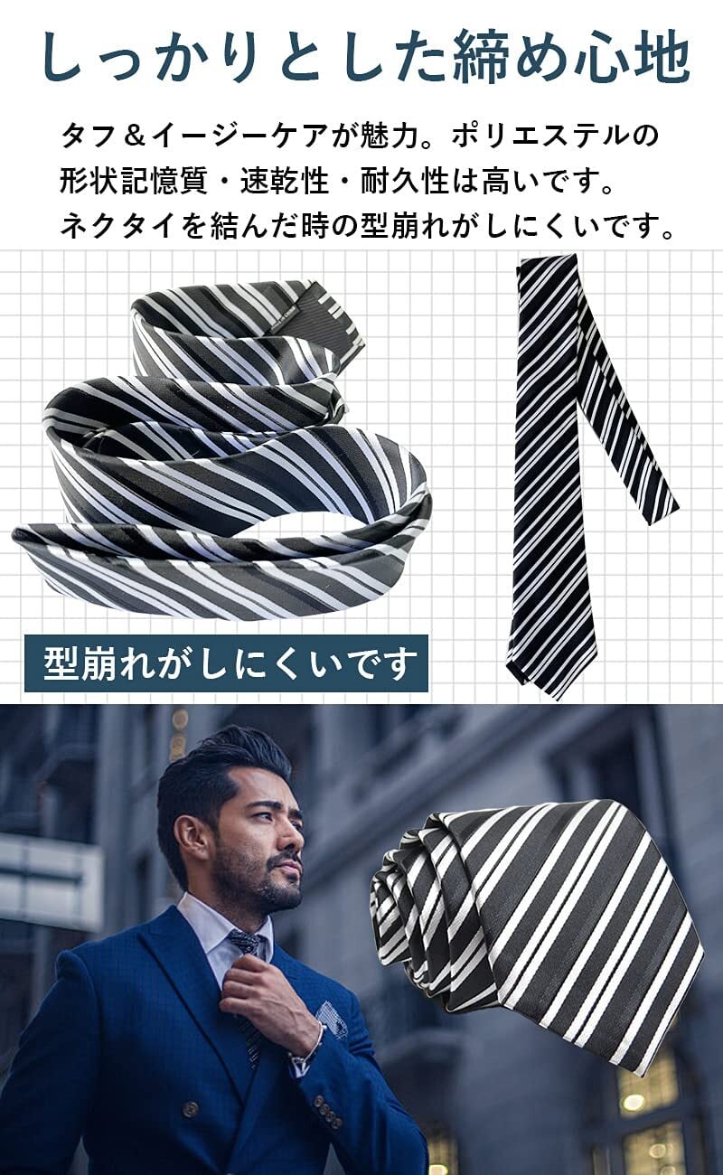 素材:ポリエステル サイズ:長さ約146cm 大剣先幅約8cm パッケージ内容:ネクタイ×6 洗濯ネット×1 ネクタイピン×1