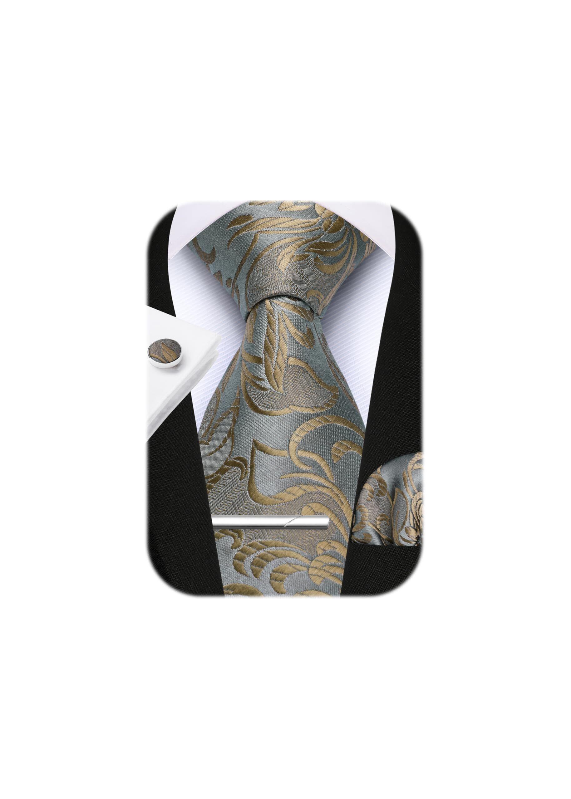 【4点セット】ネクタイ1本 + ポケットチーフ1本 + ネクタイピン1本+ カフスボタン1本 商品サイズ:ネクタイ 幅8.5cm / 長さ150cm | ポケットチーフ: 31cm*31cm | ネクタイピン:5.8cm × 0.6cm。