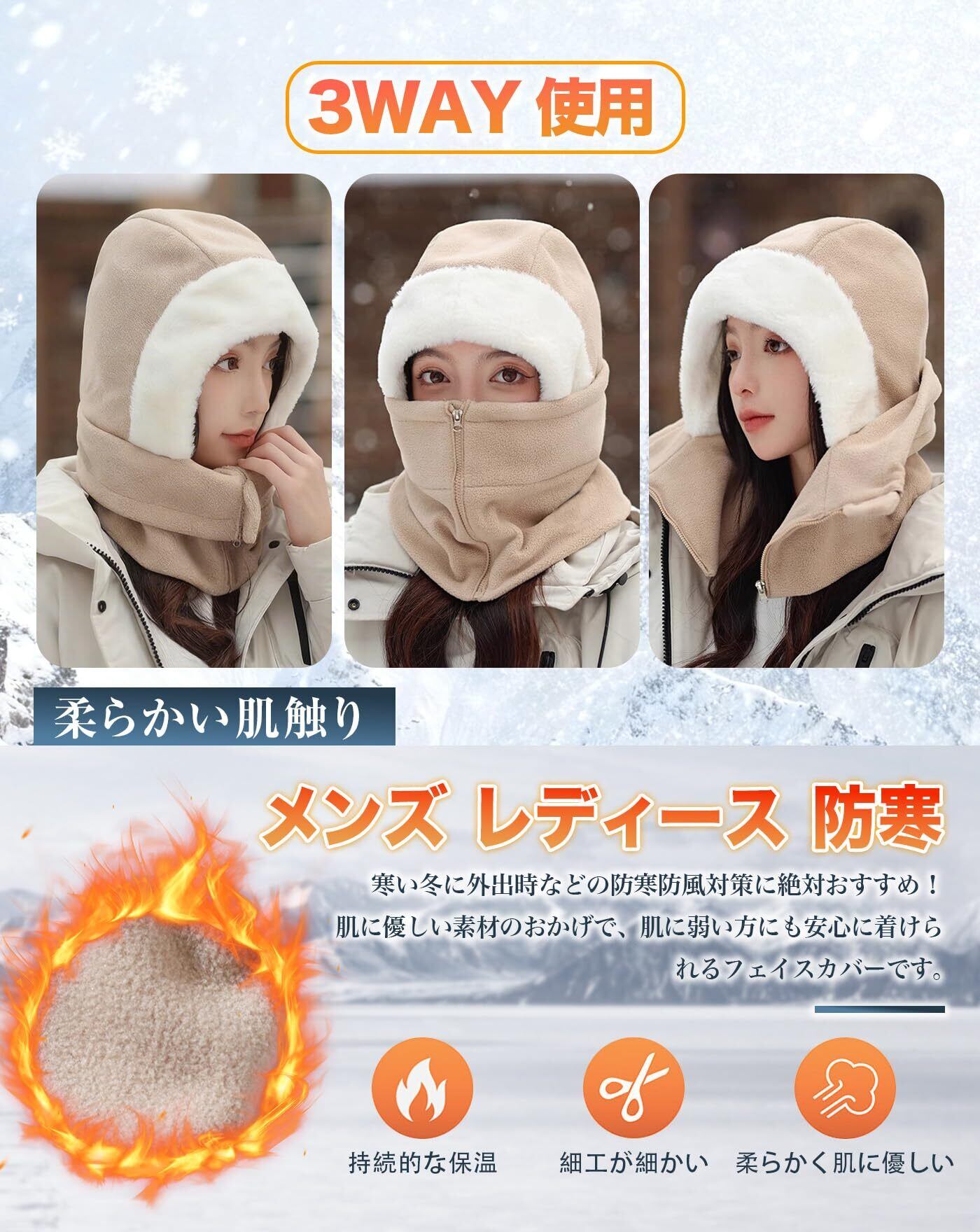 ネックウォーマー フェイスカバー 帽子 ネックガード 冬 メンズ レディース 極めた暖かさ 防寒 フードウォーマー ネックカバー 冬用 スキー 旅行 自転車 通勤 通学 男女兼用
