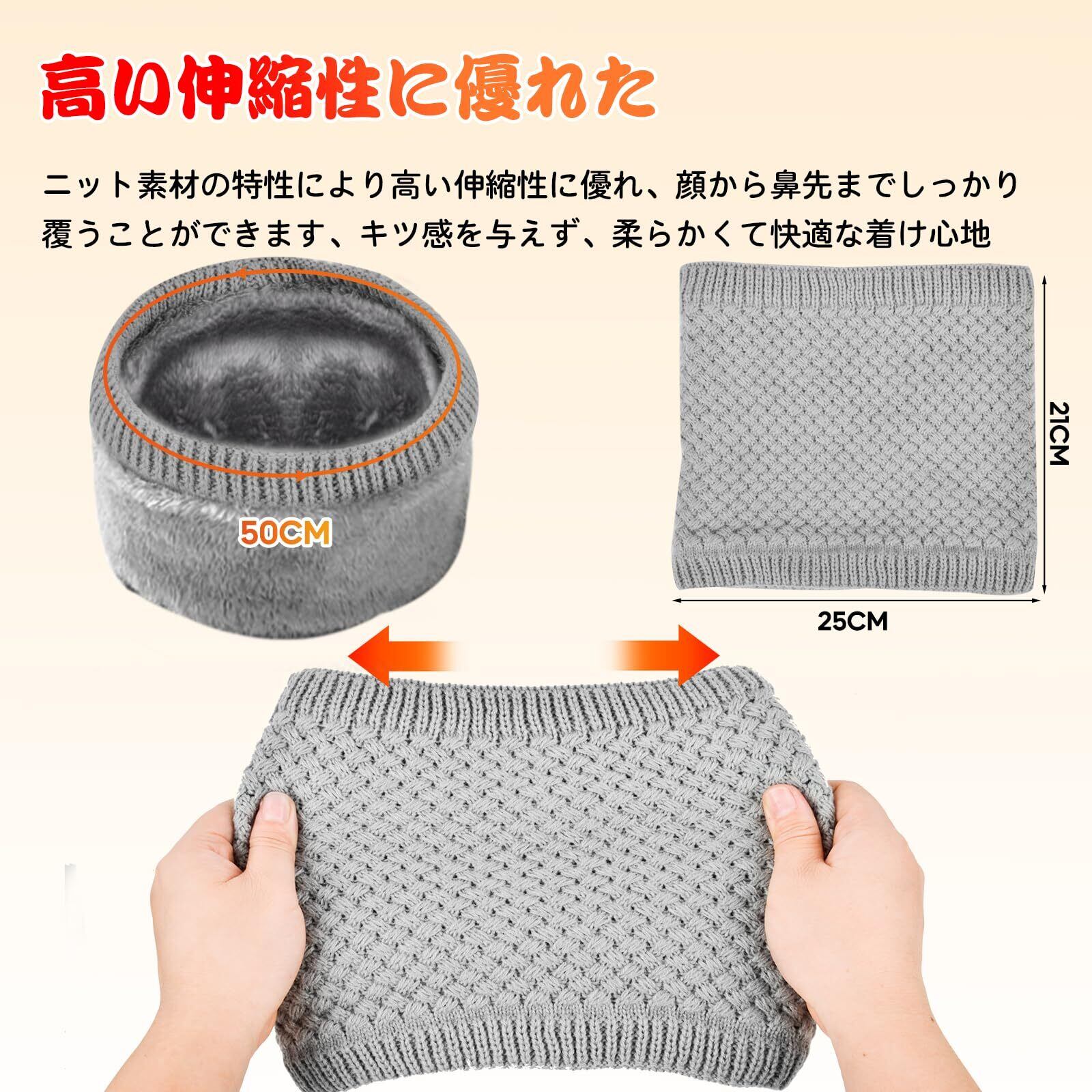 【小顔効果抜群・伸縮性UP】シンプルデザインで相性ピッタリ、オシャレに着こなせます。どんなスタイルにも合わせやすいです。立って顔を隠すことができて、首周りもしっかり覆い、顔の面積を削ることができ、いっそう小顔効果が抜群!伸縮性のあるボア素材を使用して、着脱が簡単で、ストレスを感じません、伸ばしてもすぐに元の形状に戻り、長時間使用しても形が崩れません。