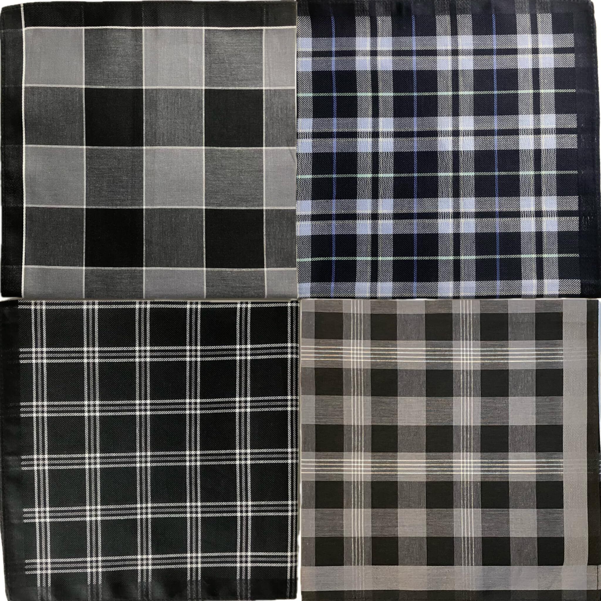 [Tsumulie] ハンカチ メンズ ビジネス 男性 4枚 セット 綿100% チェック柄 コットン 日常用 吸水性 紳士用