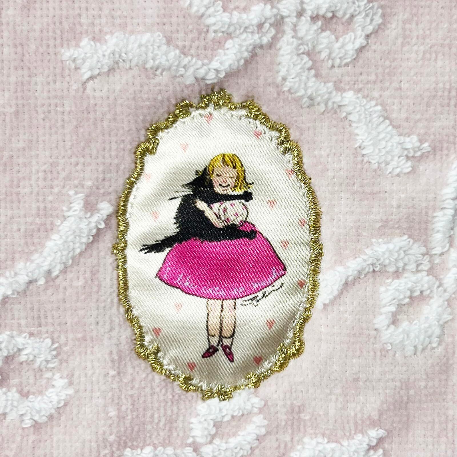 大人気イラストレーターくらはしれいの世界観がぎゅっと詰まった、アップリケハンカチ。リボンモチーフの総柄がちりばめられたタオル生地に、くらはしれいのイラストアップリケがワンポイントで施されており、立体感と遊び心のあるデザインに仕上がっています。生地の素材は綿100%で、ふんわりとしたやさしい肌触り。手を拭くたびに心地よさを感じられる、実用性とデザイン性を兼ね備えたアイテムです。