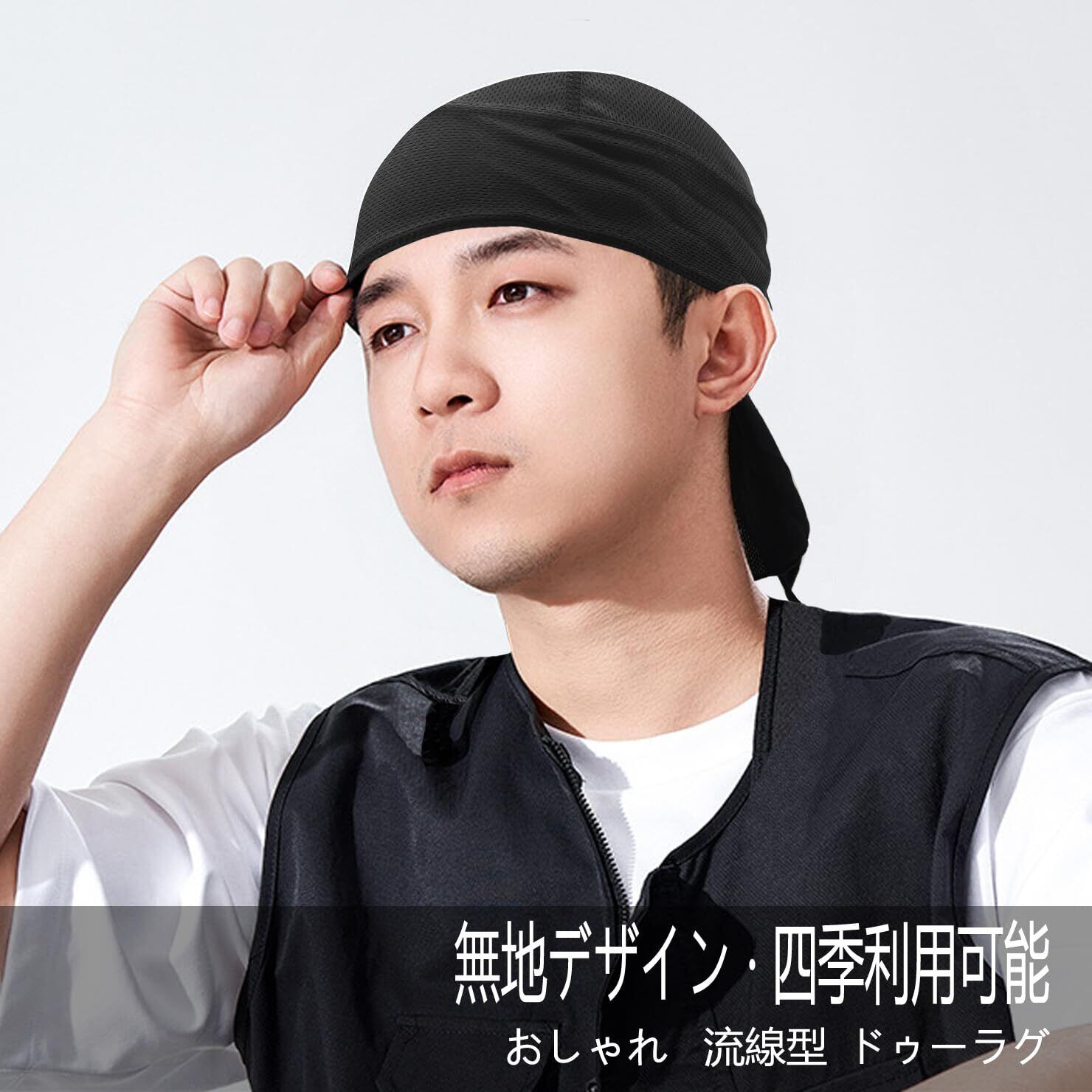 【素材】100%ポリエステル、通気性メッシュバンダナキャップ、ドゥーラグ風のデザインです、しっかりしていた。