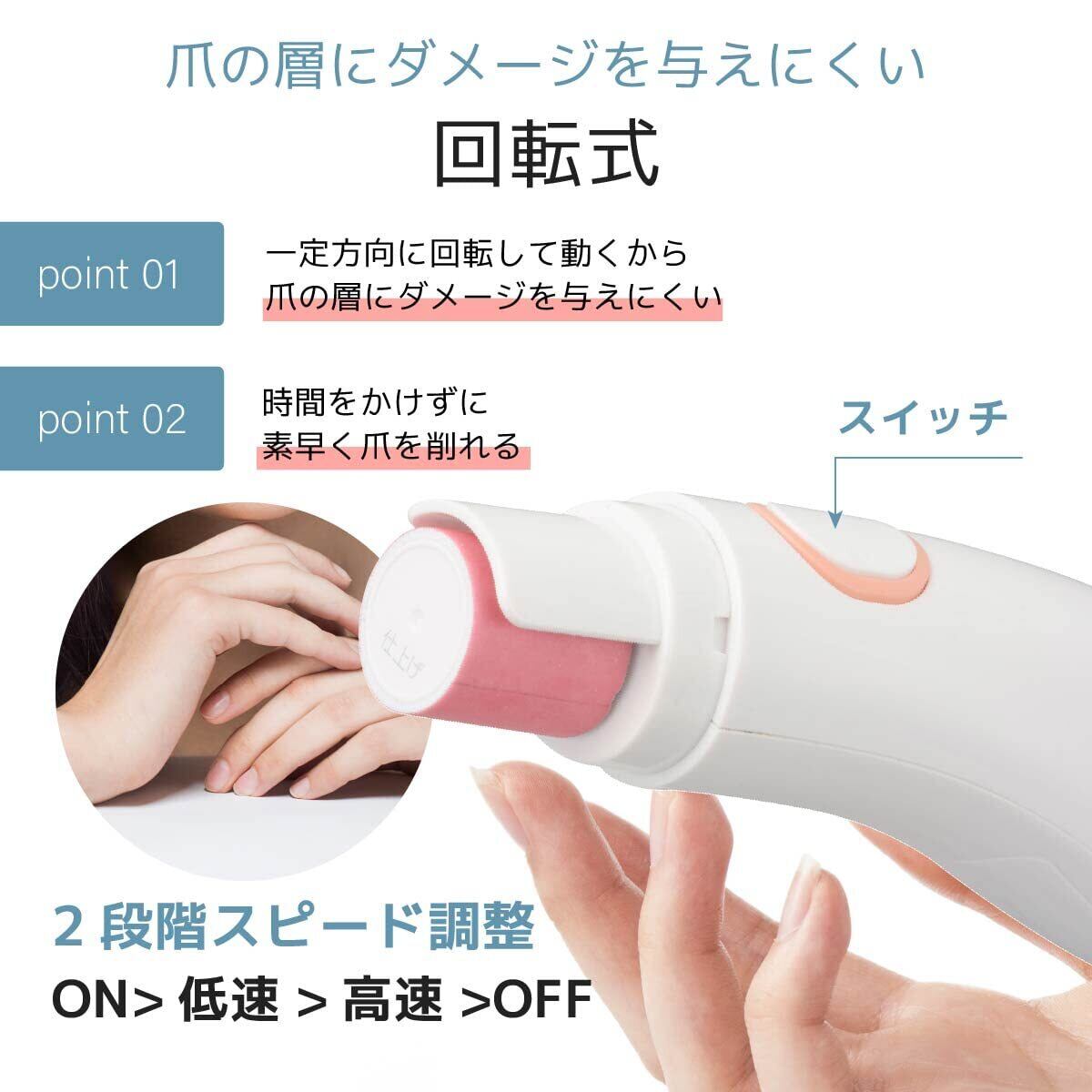 【 特 長 】 ◆4種類のアタッチメントで、形づくりから艶だしまで、手早いネイルケアができます。