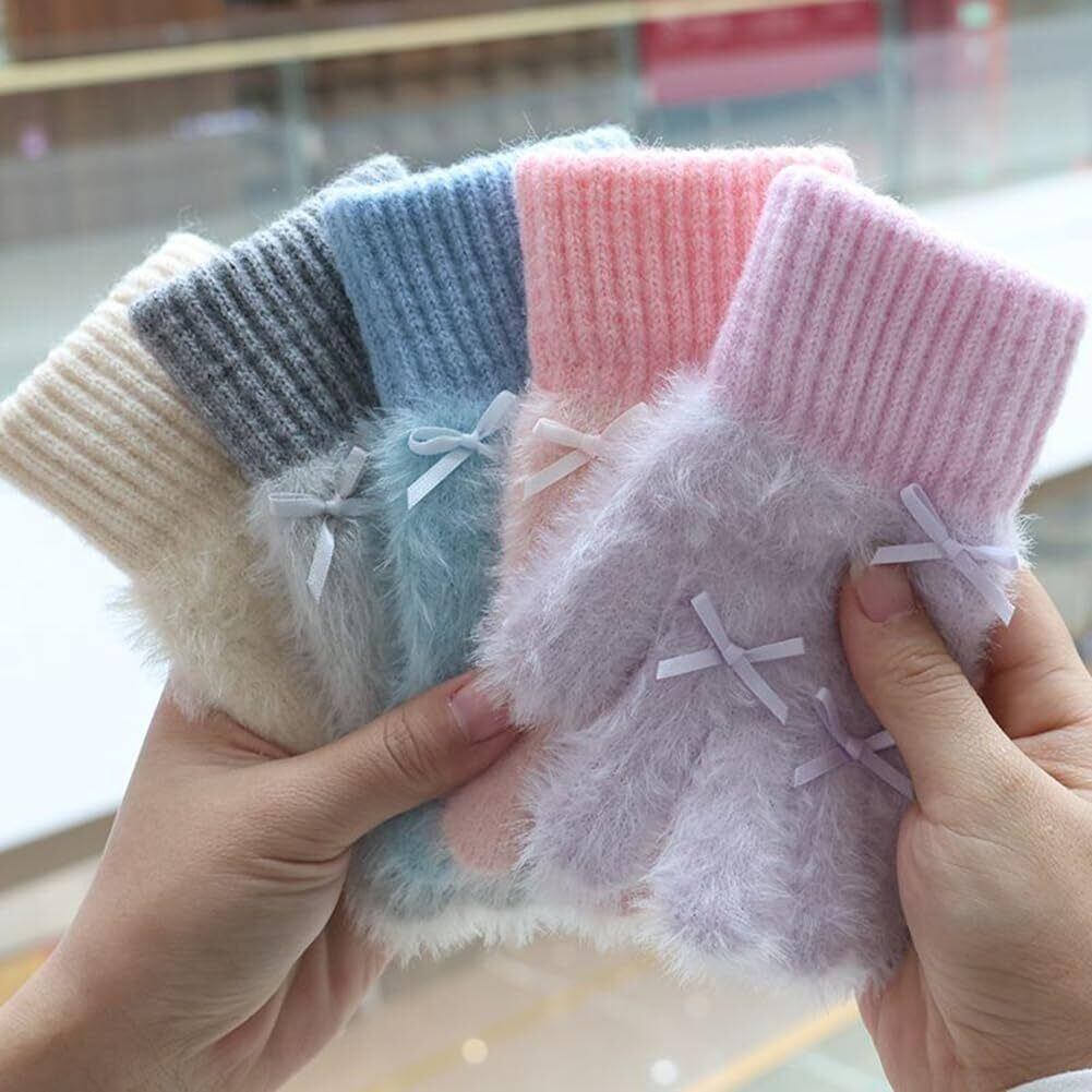 【特価商品】[InSomila] リボン 手袋 子供用 モコモコ グローブ 可愛い 5本指 秋冬 保温 防寒 小学生 児童 女の子 キッズ 通園 通学 お出かけ ボア 暖かい 2-4歳 4-8歳