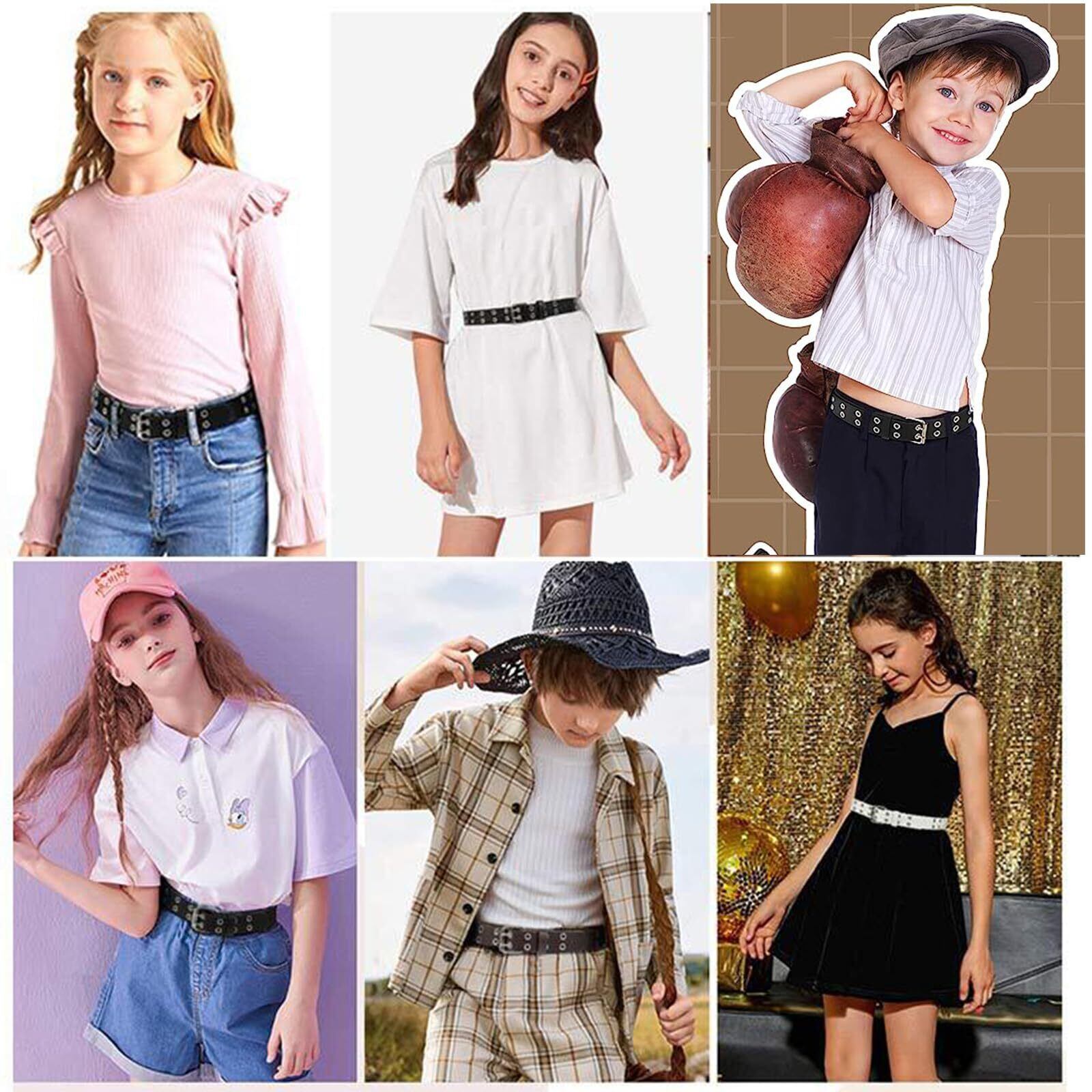 【特価商品】[NazyJnn] キッズ ベルト ダブルピン PUレザー ガチャベルト おしゃれ 穴あき チェーン付き 女の子 男の子 小学生 中高学年