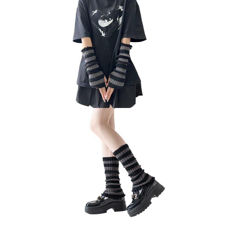 [Lettyhe] ガールズ レッグウォーマー 手袋 カラフル カラー アームウォーマー 指なし子供 親指穴付き アームカバー ニット キッズ ネオンカラー 女の子 ネオンカラー ルーズソックス 派手 ダンス 衣装 暖かい フリーサイズ 上下セット