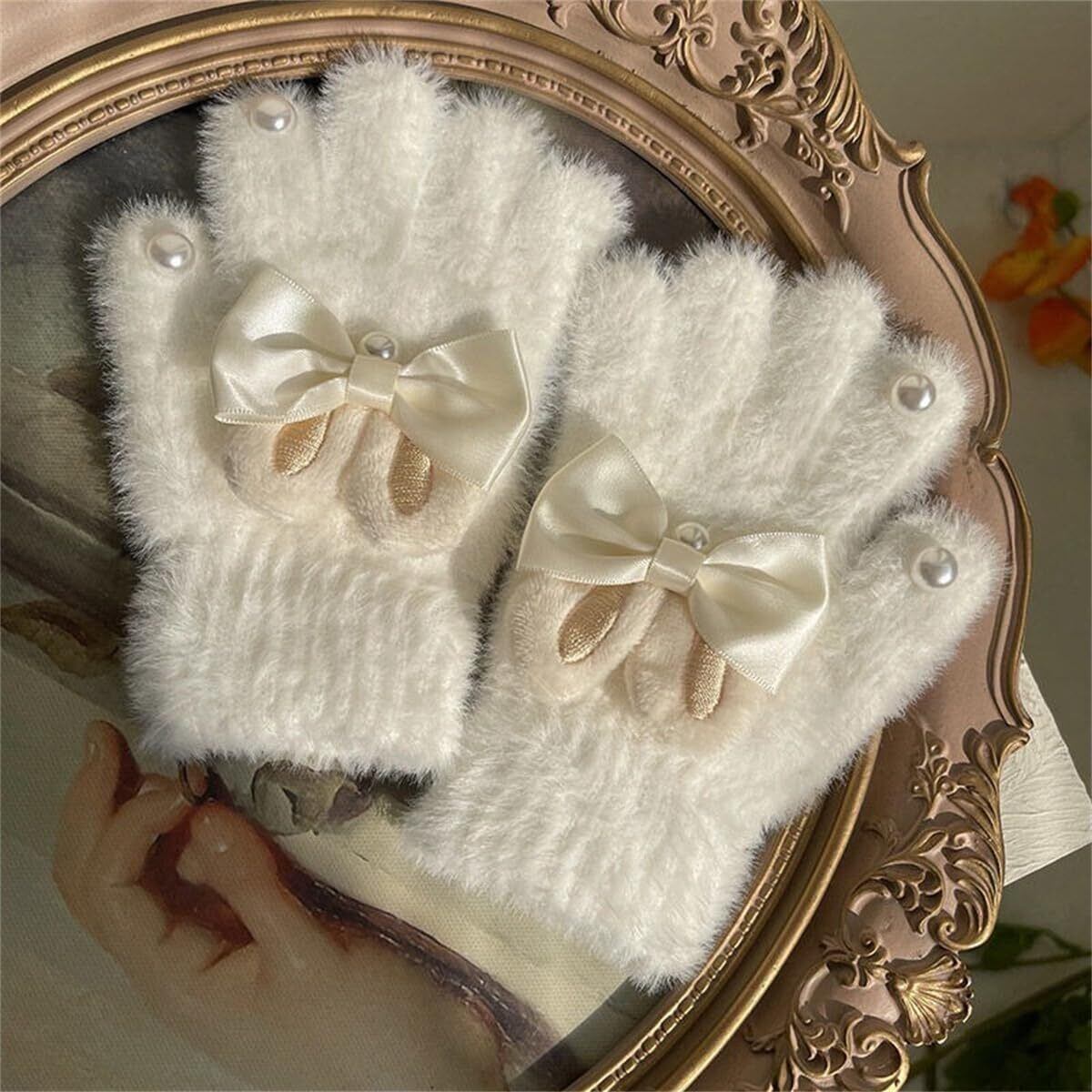 [VIISEN] キッズ手袋 可愛い 蝶結び 女の子 手袋 6-12歳 子供用 グローブ 人気 自転車 5本指 冬のお出かけ用手袋 プレゼント 保温 防寒 通園 通学