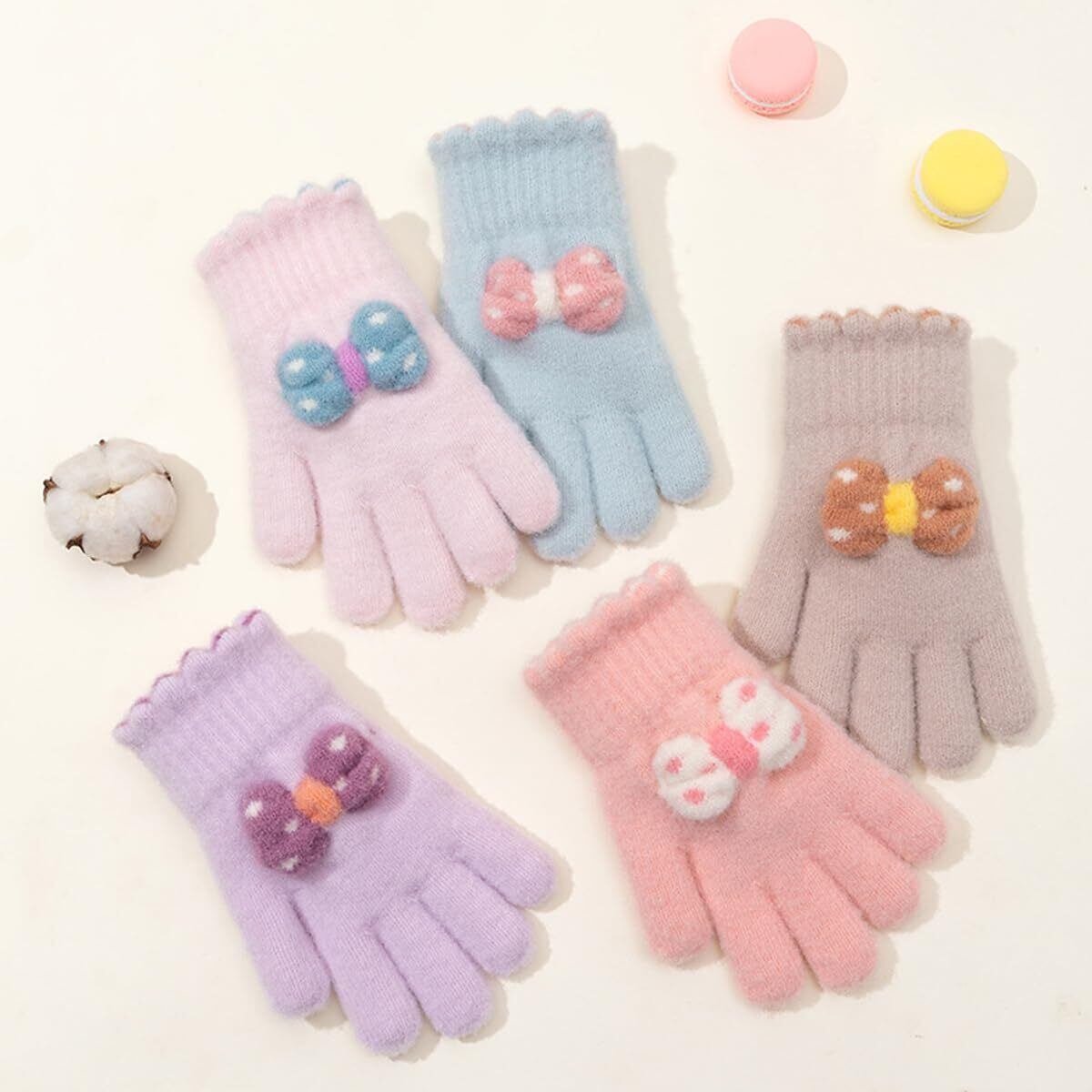 【特価商品】[QINTIAN] キッズ手袋 男の子 女の子 小学生 おしゃれ 可愛い リボン 児童 グローブ 子供用 あったか手袋 全指 保温 防寒 通園 通学 自転車 子ども用