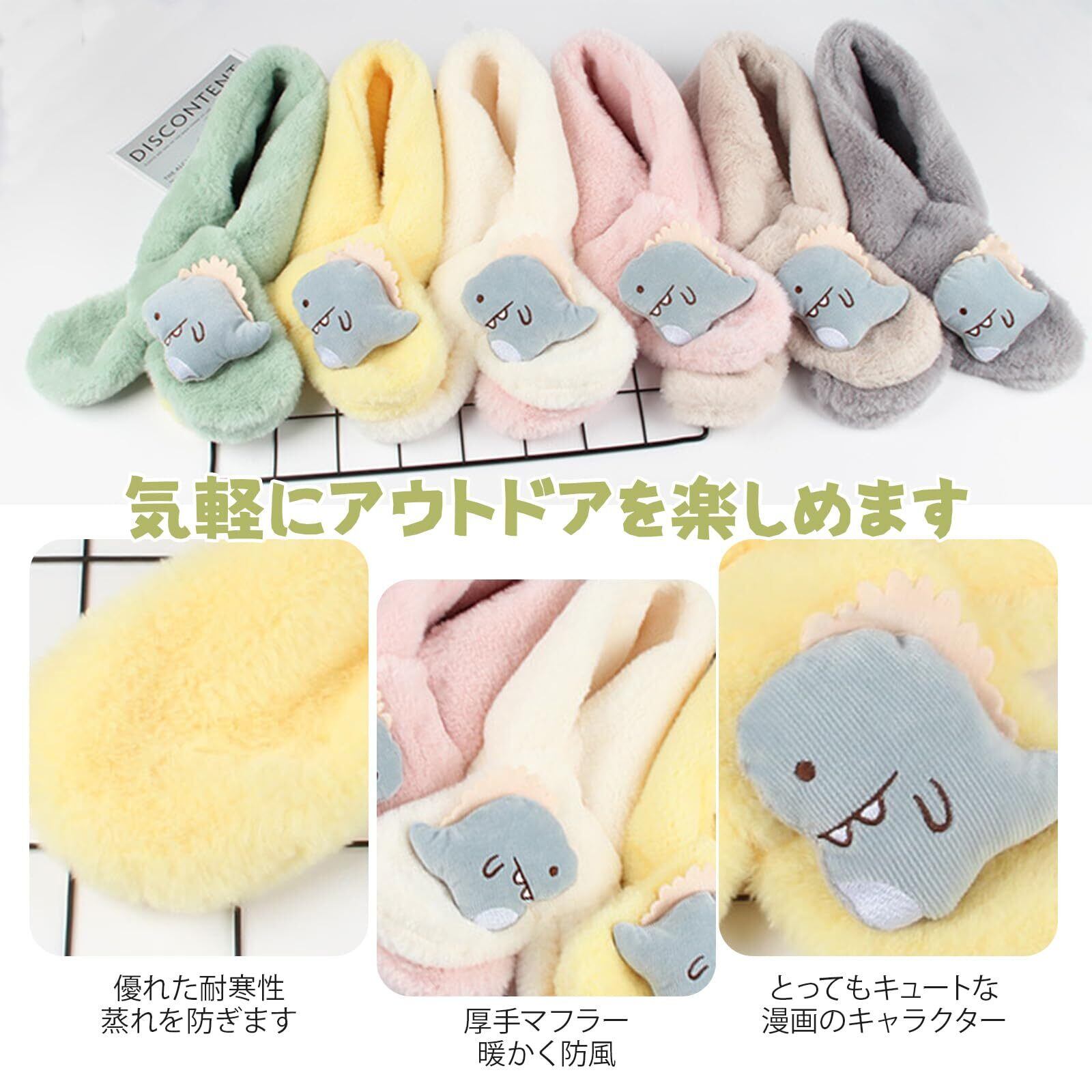 [かわいい漫画デザイン] このマフラーは、鮮やかな色とキュートなイラストで、生き生きとした楽しい恐竜の漫画デザインが特徴で、子供たちに人気です。ファッショナブルで遊び心があり、寒い冬でも子供たちが個性を表現できます。