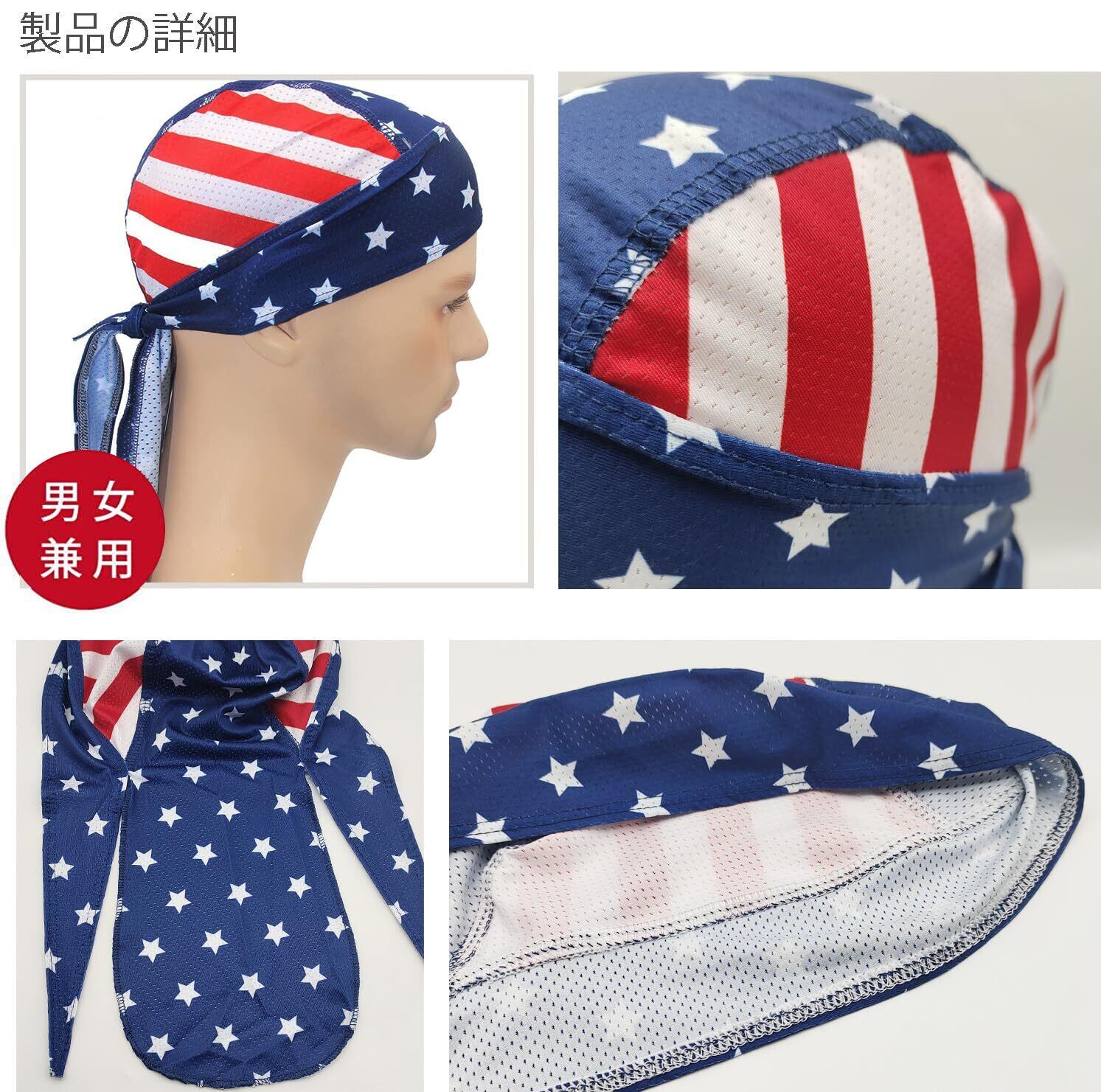 [Trifong] バンダナキャップ メンズ バンダナ 海賊 星条旗柄 メッシュ 速乾 吸汗 帽子 ばんだな UVカット 汗止め 通気素材 ドゥーラグ スカルキャップ 熱中対策 抗紫外線 野外活動 自転車