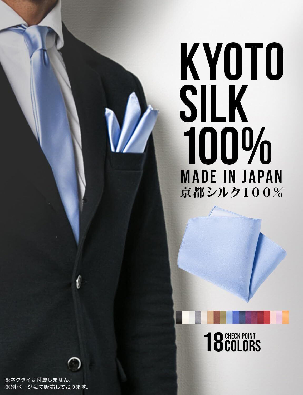 [スタイルイコール] ポケットチーフ 日本製 シルク100% メンズ スーツ 新入社員 入社式 卒業式 結婚式 パーティ フォーマル 折り方ガイド付き 【全18色】