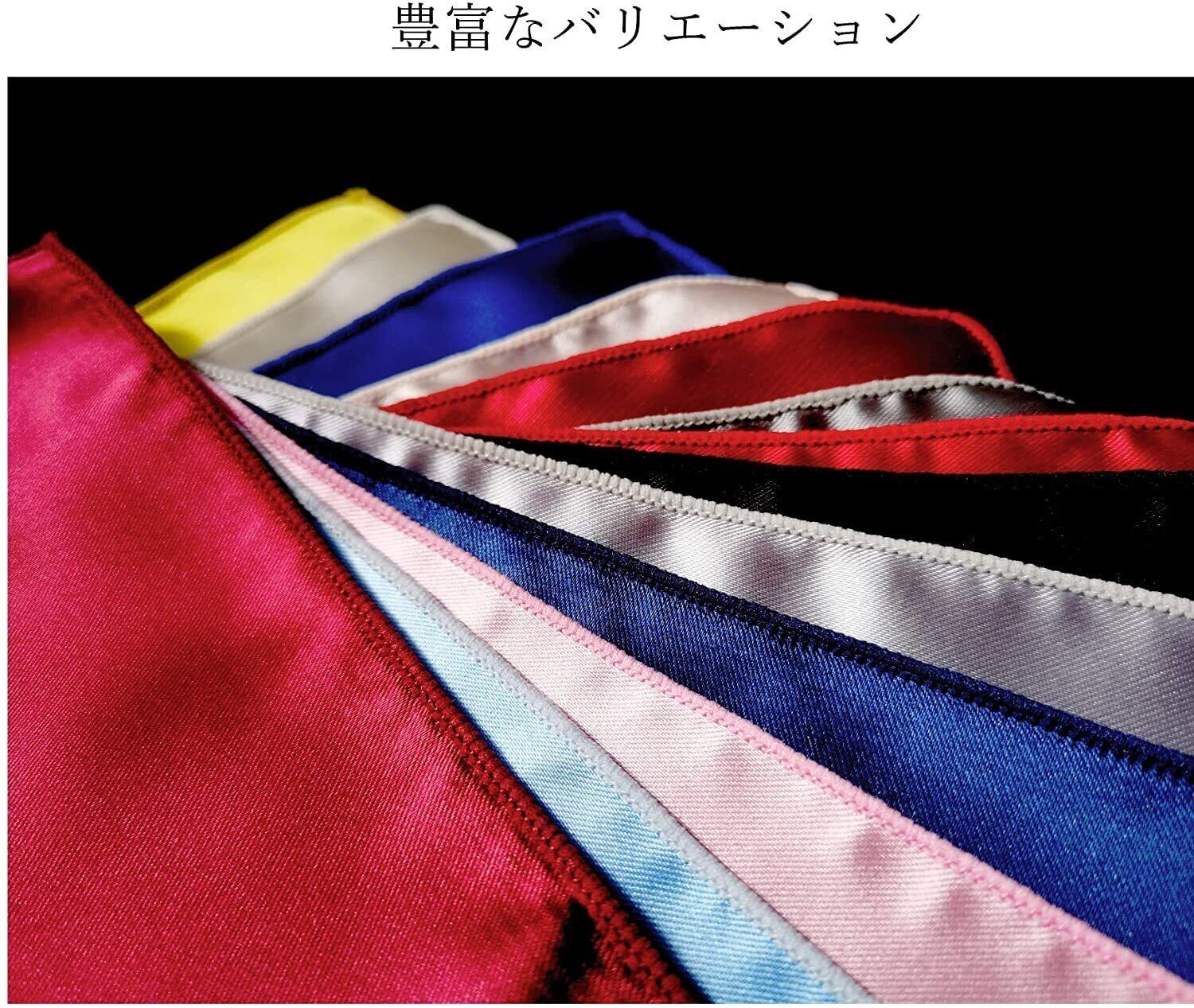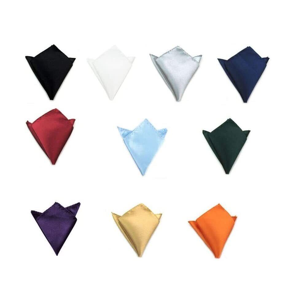 【10色セット】ブラック、ネイビーブルー、ダークパープル、ホワイト、ライトグレー、ライトシャンパン、オレンジ、ダークグリーン、ライトブルー、ダークレッド。ハンカチには様々な色があり、様々なスーツに合わせることができます。
