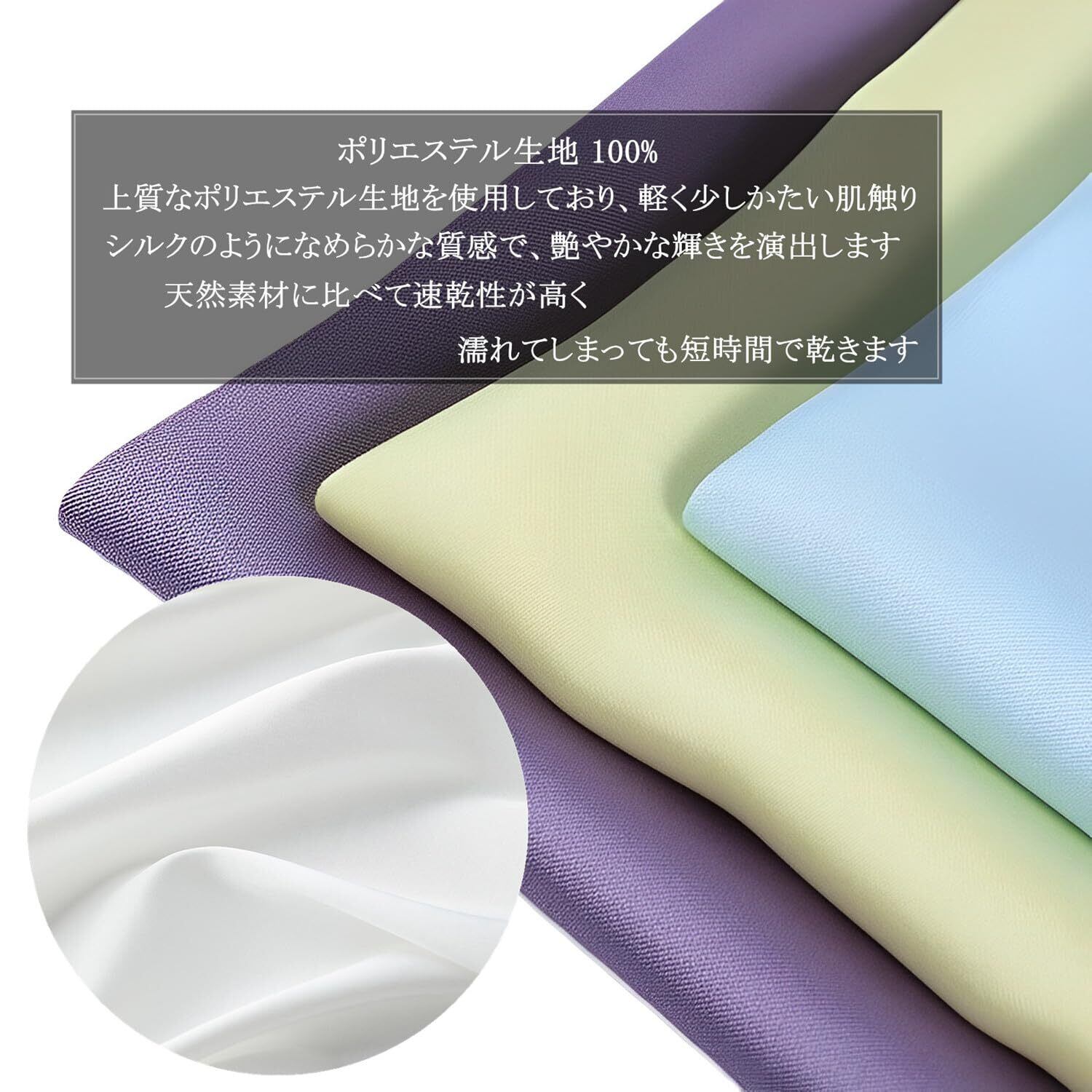 【素材】上質なポリエステル生地を使用しており、軽く少しかたい肌触り、シルクのようになめらかな質感で、艶やかな輝きを演出します。天然素材に比べて速乾性が高く、濡れてしまっても短時間で乾きます。●カラー:カナリーイエロー