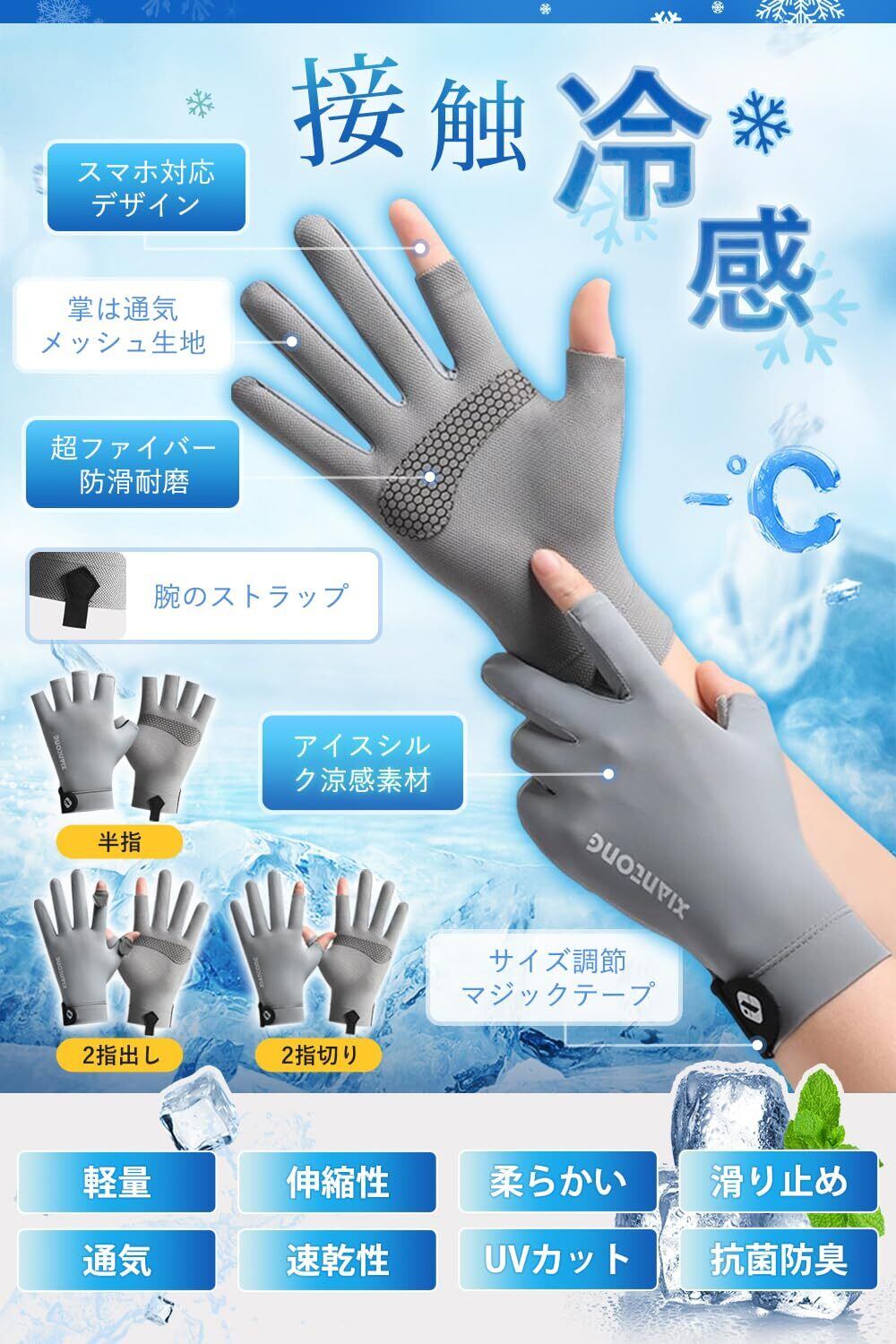 【3つのスタイル&スマホ対応手袋】夏用手袋は柔らかく、接触冷感、夏の紫外線対策に最適なUVカット手袋です。「2本指出し」「2指本なし」「半指」3つ仕様が揃っています。どちらタイプでも差し指と親指の指先部分を露出から、手袋が脱がなくてもタブレットやスマホが操作できます。指先の自由度が高く、急な電話の対応にも、文字入力、財布からコインや小銭などの取出しにも、使いやすいスマホ 手袋ですです。釣り、運転、ガーデニングなど細かい手作業の時にも便利なアウトドア用手袋です。