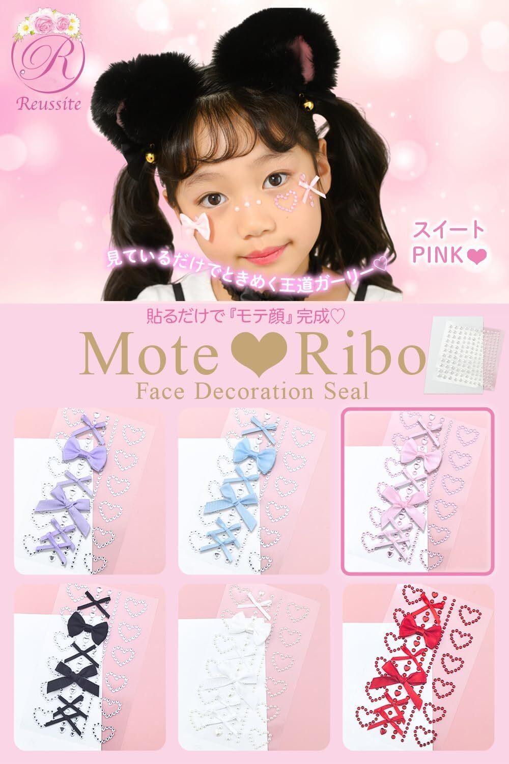 顔 シール キラキラシール ラインストーン デコシール パール 髪 リボン/モテリボ (ピンク)