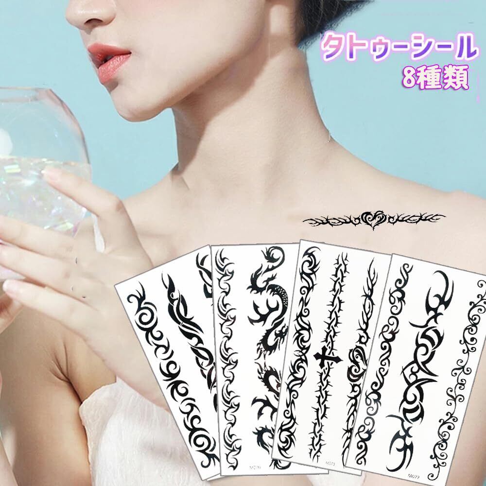 【パッケージ内容】各タトゥーシール トライバル 鎖には8種類があり、さまざまなデザインでご安心に選択することができます。