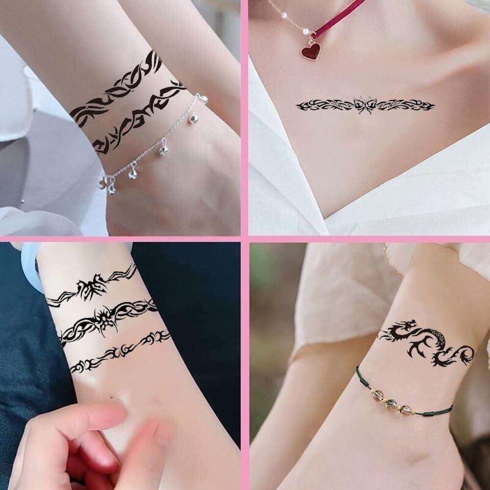 MOICUUタトゥーシール トライバル 鎖 8枚セットブレスレット 刺青 入れ墨 タトゥーステッカー ボディーシール メンズ レディース 防水 腕、足、体、胸、肩、背中に適しています tattoo 9X19㎝ (トライバル 黑)
