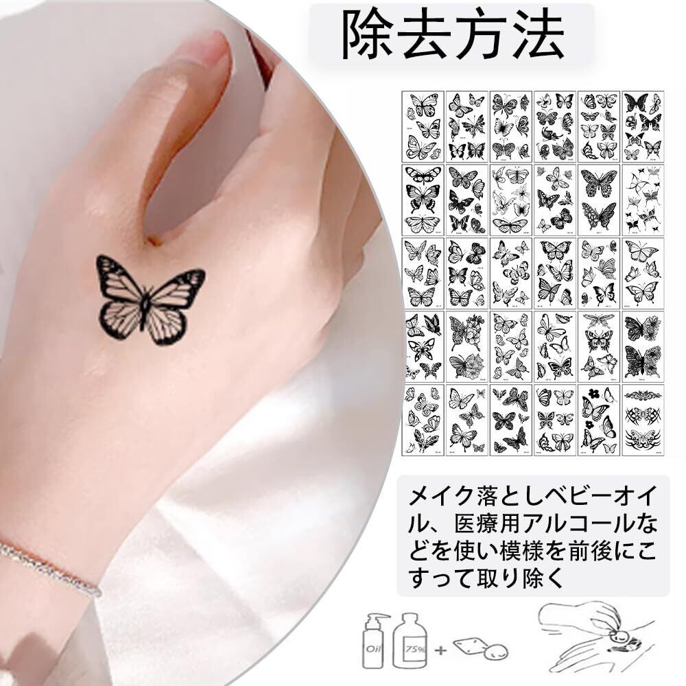 【在庫セール】タトゥーシール ファッションタトゥーシール 防水タトゥーシール ブラック バタフライタトゥーシール レディースタトゥーシール 自分らしさをアピール 美学を楽しむ シンプルセルフシール 1〜2週間保存 30枚セット 165パターン