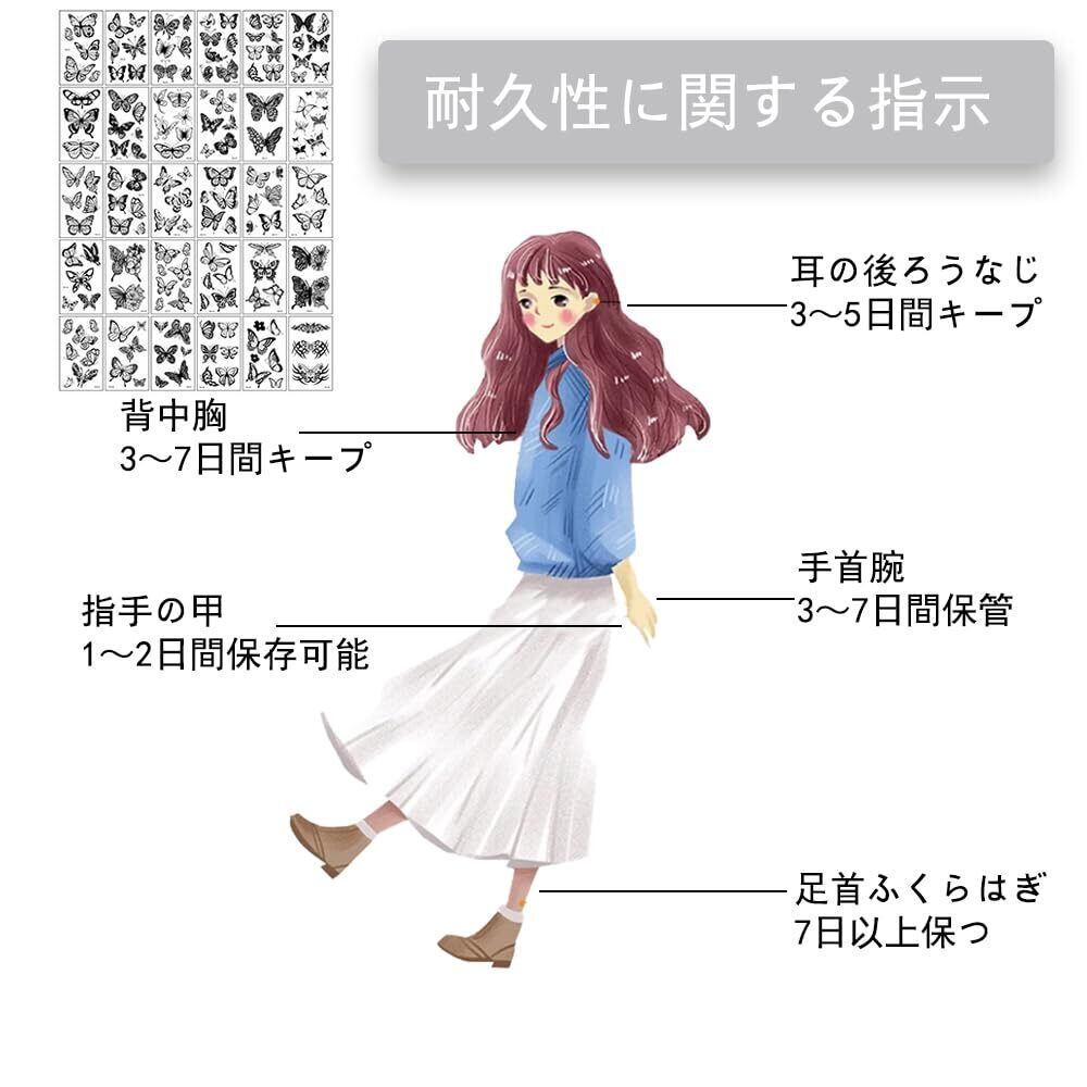 タトゥーシール ファッションタトゥーシール 防水タトゥーシール ブラック バタフライタトゥーシール レディースタトゥーシール 自分らしさをアピール 美学を楽しむ シンプルセルフシール 1〜2週間保存 30枚セット 165パターン