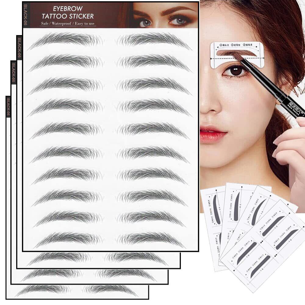 つけ眉毛タトゥーシール 眉 アートメーク 眉毛ステッカー 【眉毛テンプレート付き 8ペア 】メイクシール眉毛 40ペア 4D6Dナチュラルまゆげ アイブロウ 消えない 防水 眉タトゥーシール自然な髪眉毛シール 男女兼用 眉付けタトゥー 耐久性 (BLACK-06)
