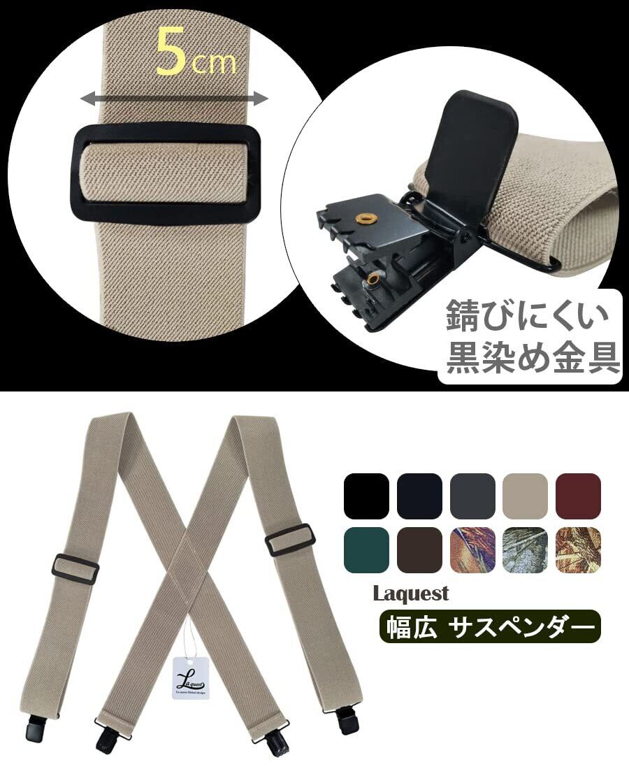 【数量限定】[Laquest] (ラクエスト) 5cm幅 X型サスペンダー 幅広バンド 錆びにくい 黒塗装金具