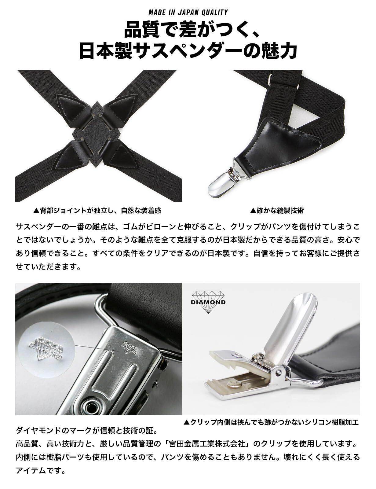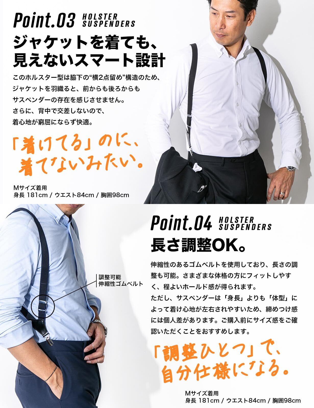 [スタイルイコール] サスペンダー 日本製 メンズ ホルスター ガンホルダー 25mm幅 幅広 2点留め ビジネス 着脱簡単 作業用 日本製金具 日本製クリップ