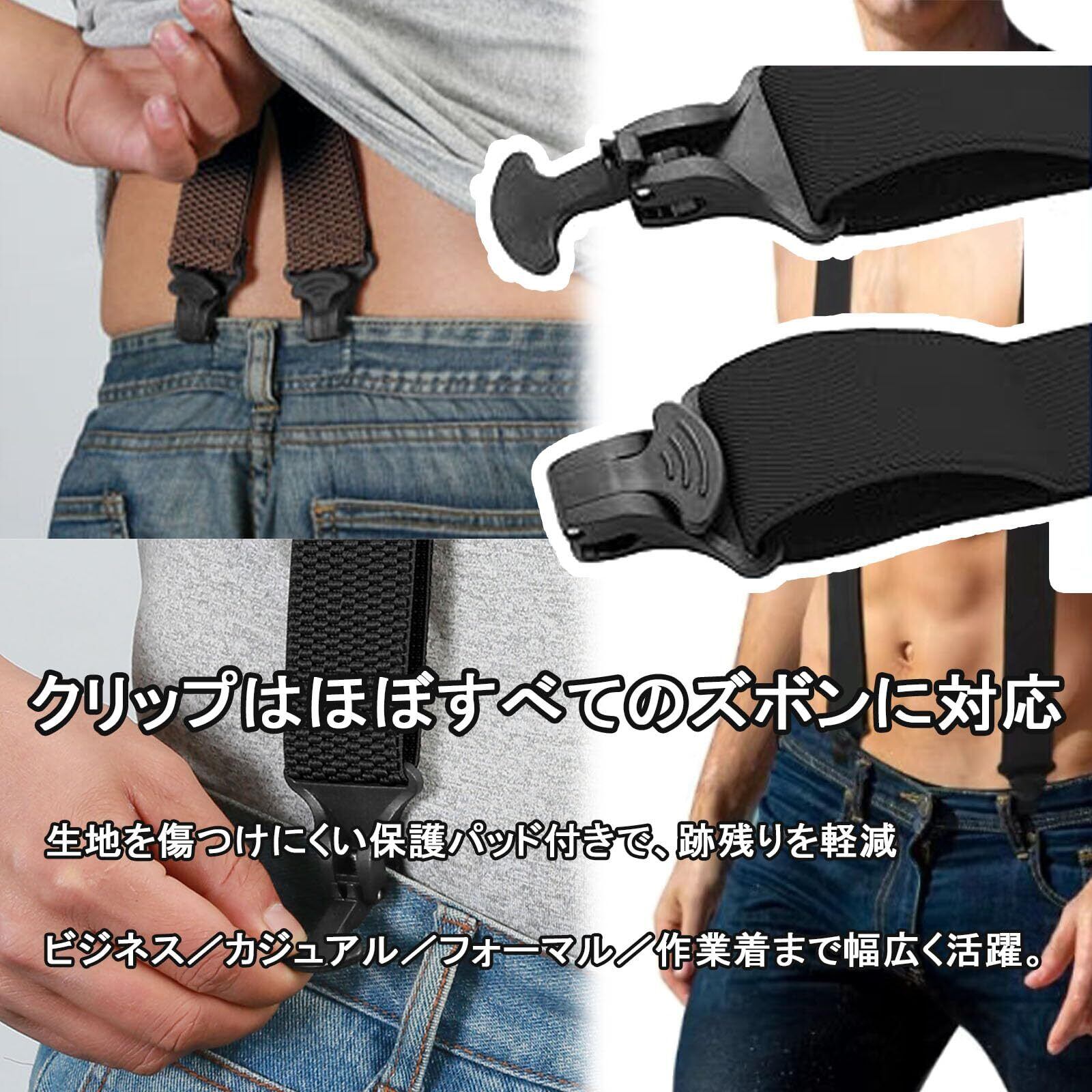 [NazyJnn] サスペンダー メンズ 非金属クリップ X型 幅3.8cm 伸縮 調整可能 120cm 軽量 ビジネス カジュアル 作業用 黒 ベージュ ネイビー グレー