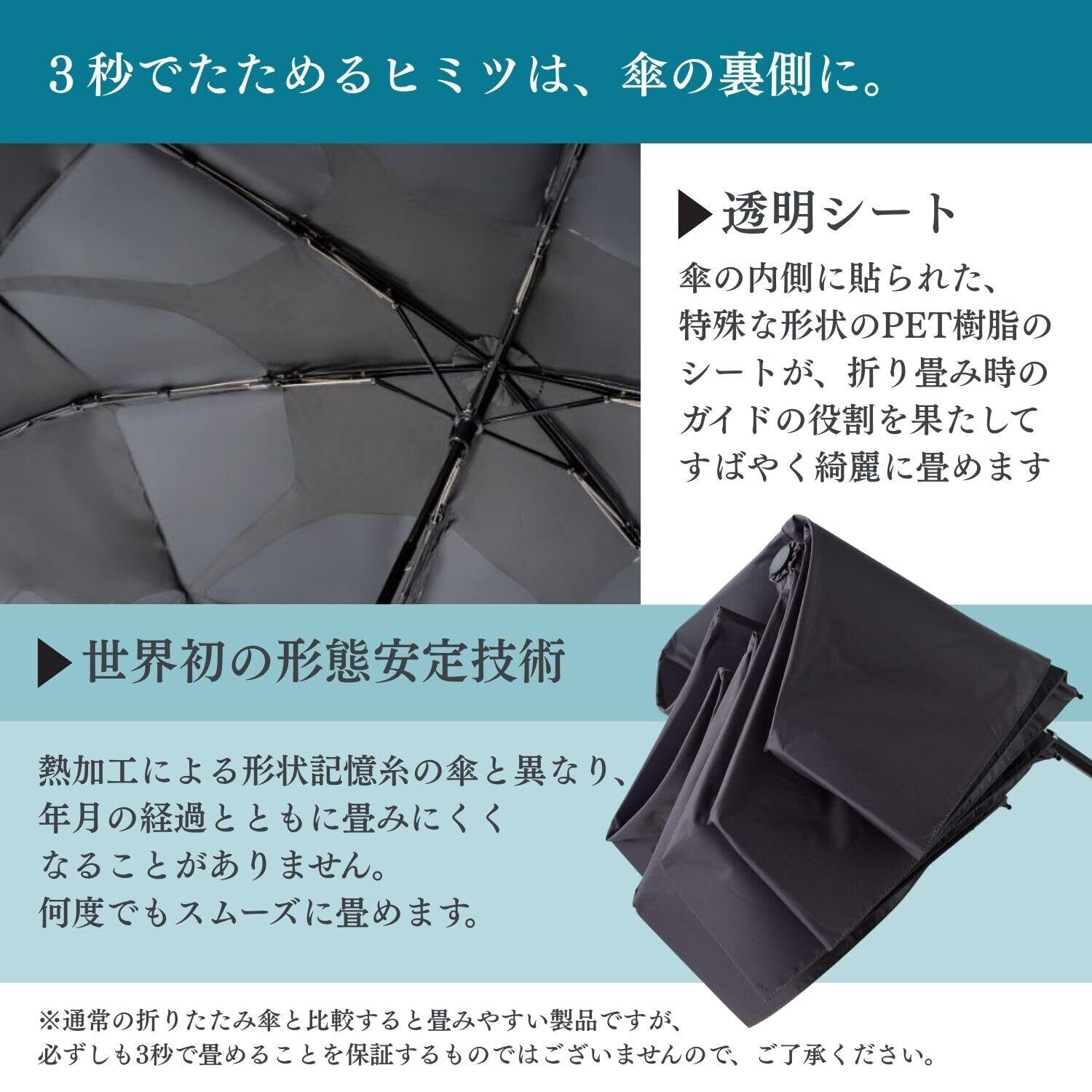 3秒でたためる傘 ウラワザ 折りたたみ傘 形状記憶 形状安定 大きい 直径97cm 約230g urawaza 雨傘 手開き 簡単開閉 無地 高撥水 テフロン加工 防汚効果 UVカット 晴雨兼用 メンズ 親骨55cm 折り畳み傘 畳みやすい 10263 10083