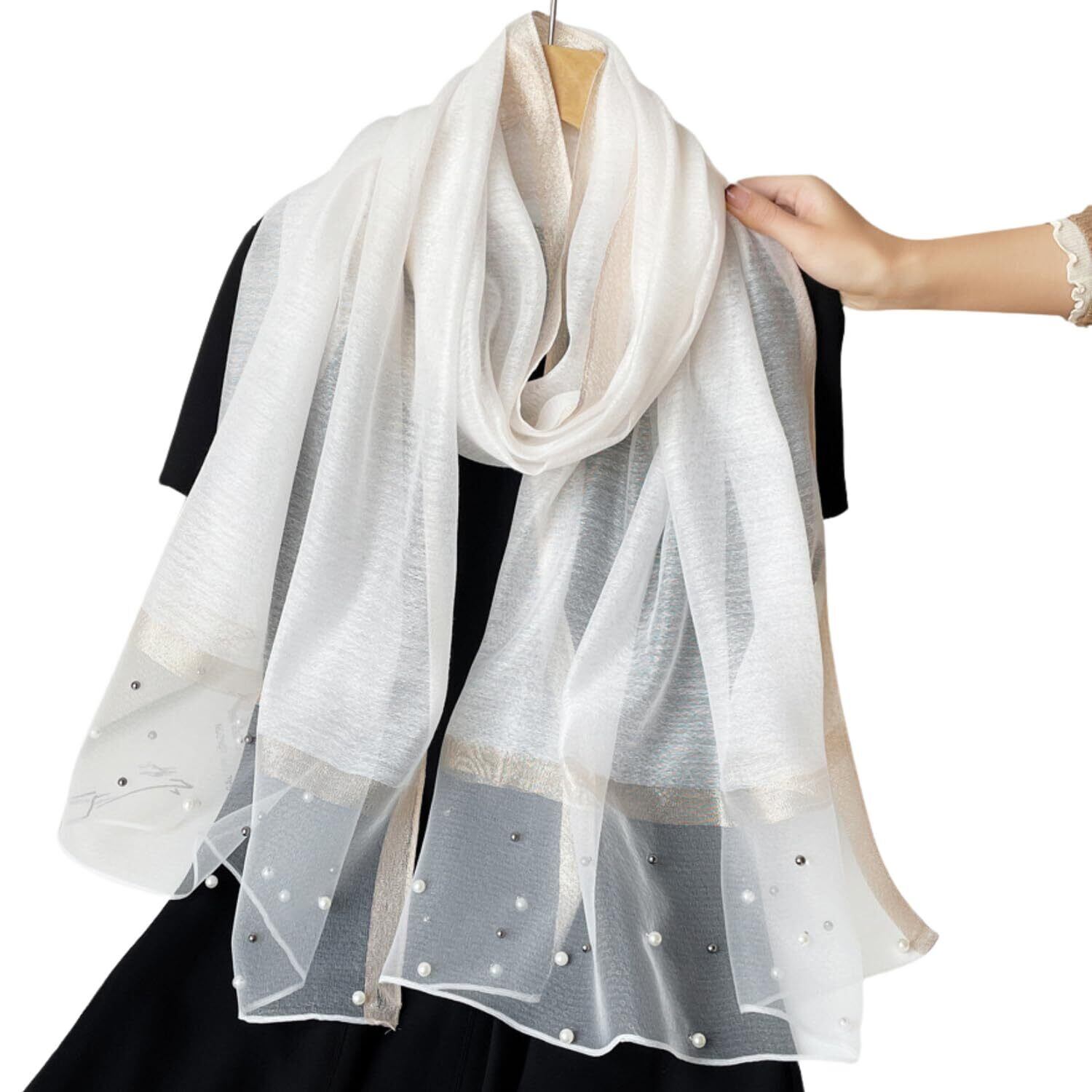 【特価商品】[kinaviola] パール ビジュー 大判 ストール ショール スカーフ 大判 結婚式 パーティー ドレス フォーマル キレイめ キラキラ 上品 華やか レディース 女性 シフォン 羽織り ギフト