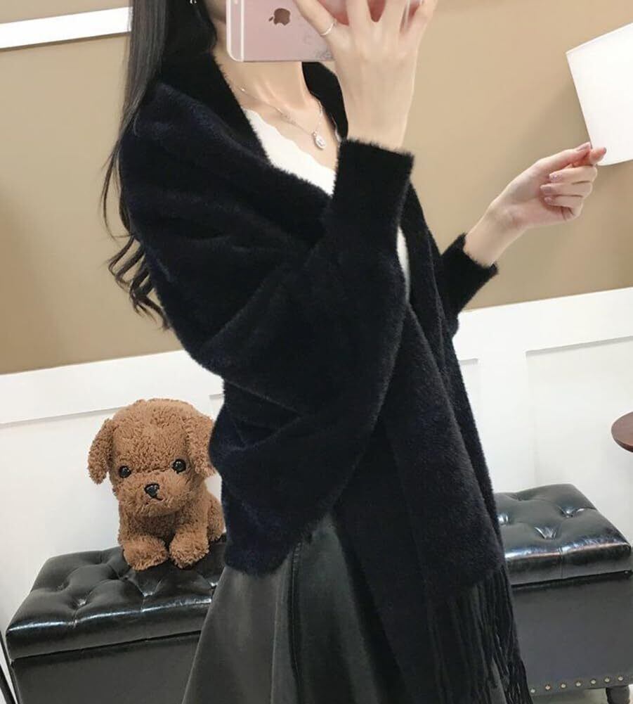 [Muzly] カーディガン 袖付きストール レディース ストール ショール アウター 秋冬 ふわふわ 柔から 大人 上品 無地 可愛い
