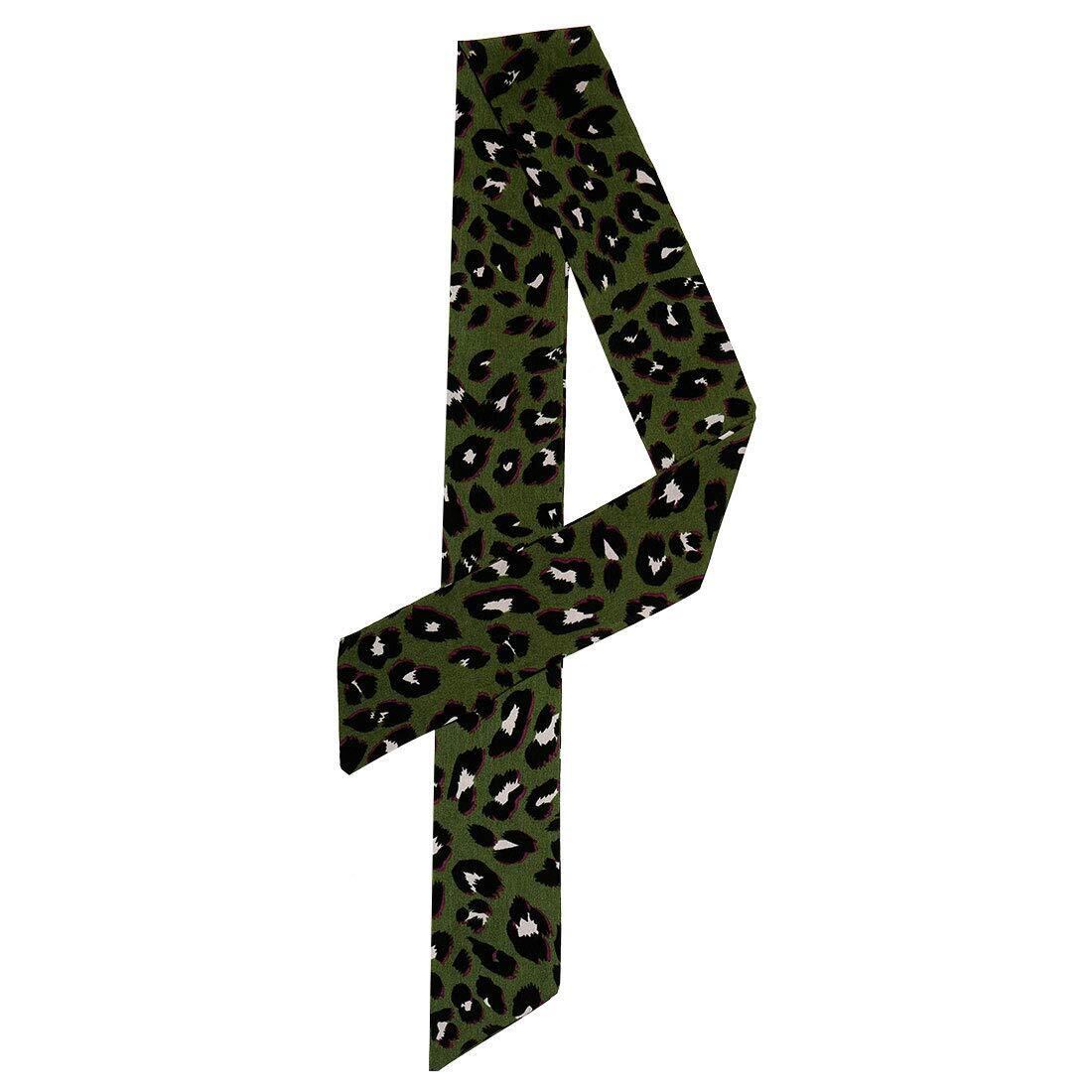 [Allegra K] リボンスカーフ ネッカチーフ 長方形 細い ヒョウ柄 髪飾り バッグ飾り レディース