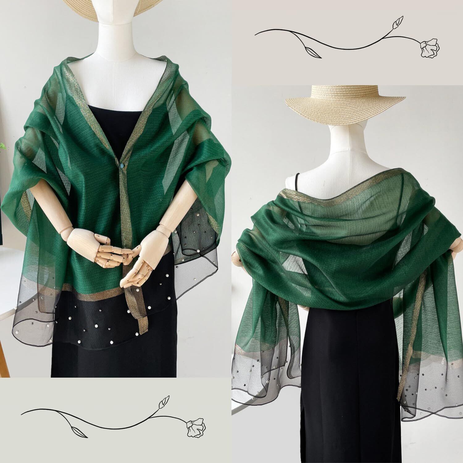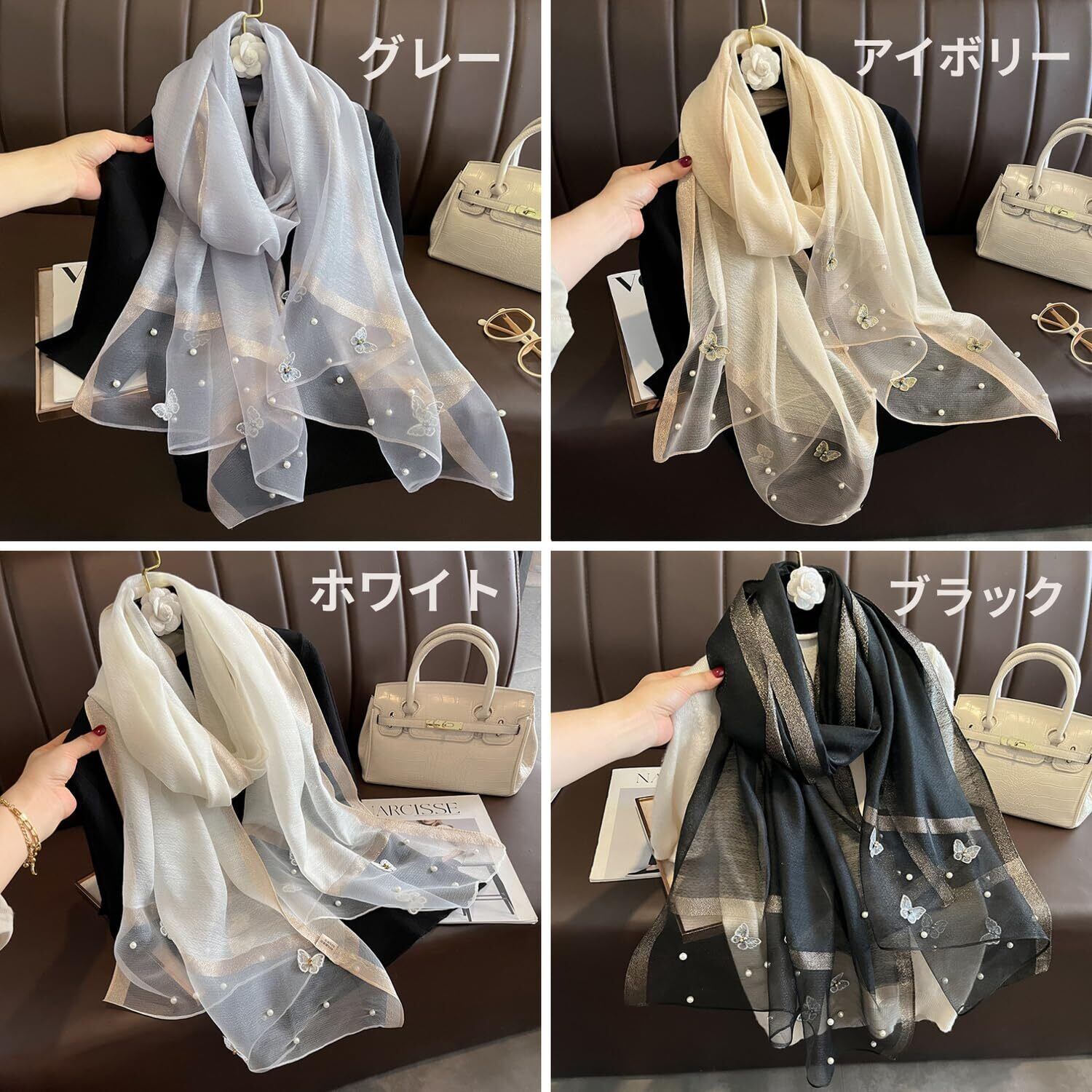 【2022最新】[kinaviola] 蝶々 バタフライ パール ビジュー 大判 ストール ショール スカーフ 大判 結婚式 パーティー ドレス フォーマル キレイめ キラキラ 上品 華やか ギフト