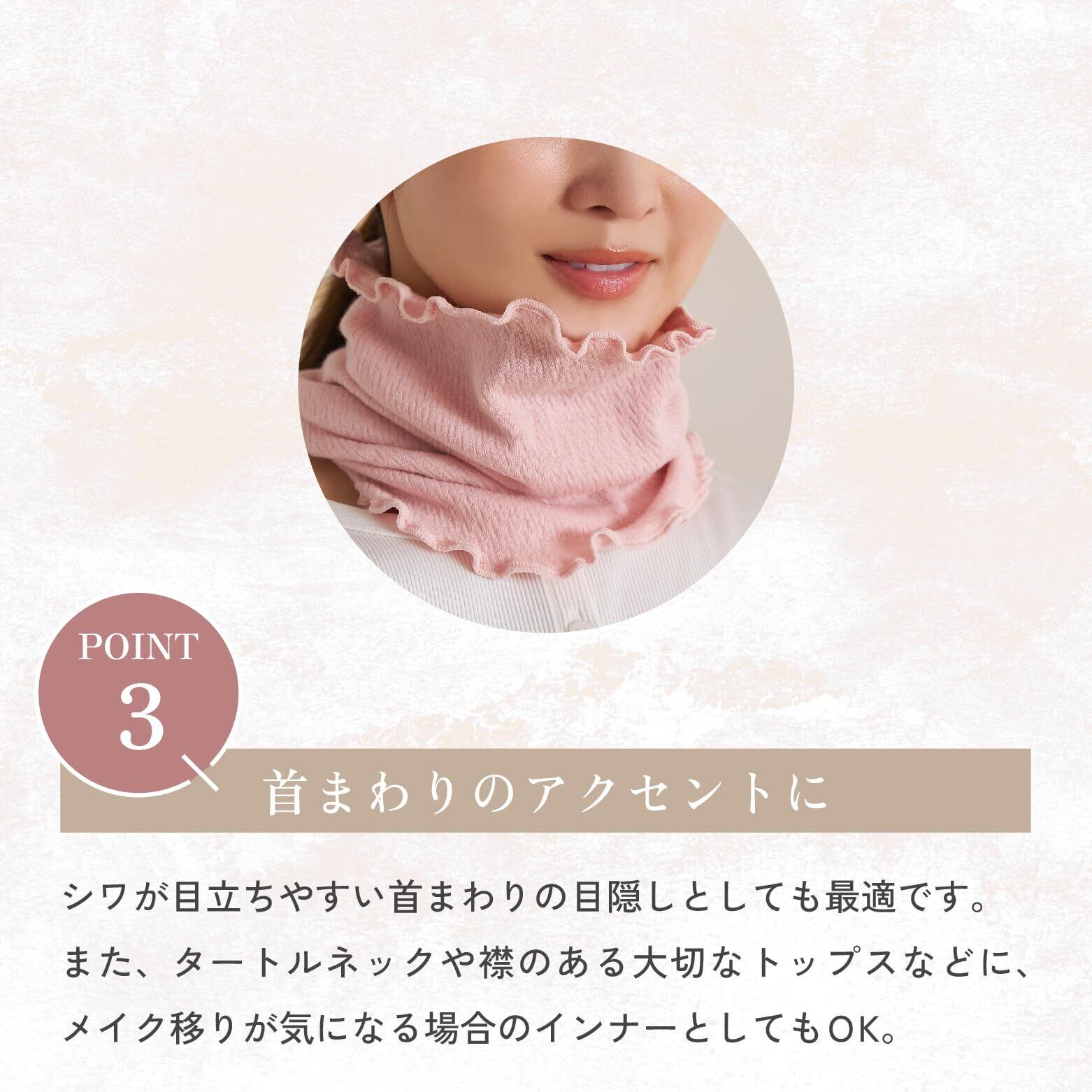 【美容効果の高いシルクで首元うるおいキープ】 シルクは肌の主成分「アミノ酸」と同じタンパク質で構成。素肌と相性が良く、乾燥が気になる首元を保湿しながらあたためます。年齢が出やすい首回りの“美温活”に最適です。