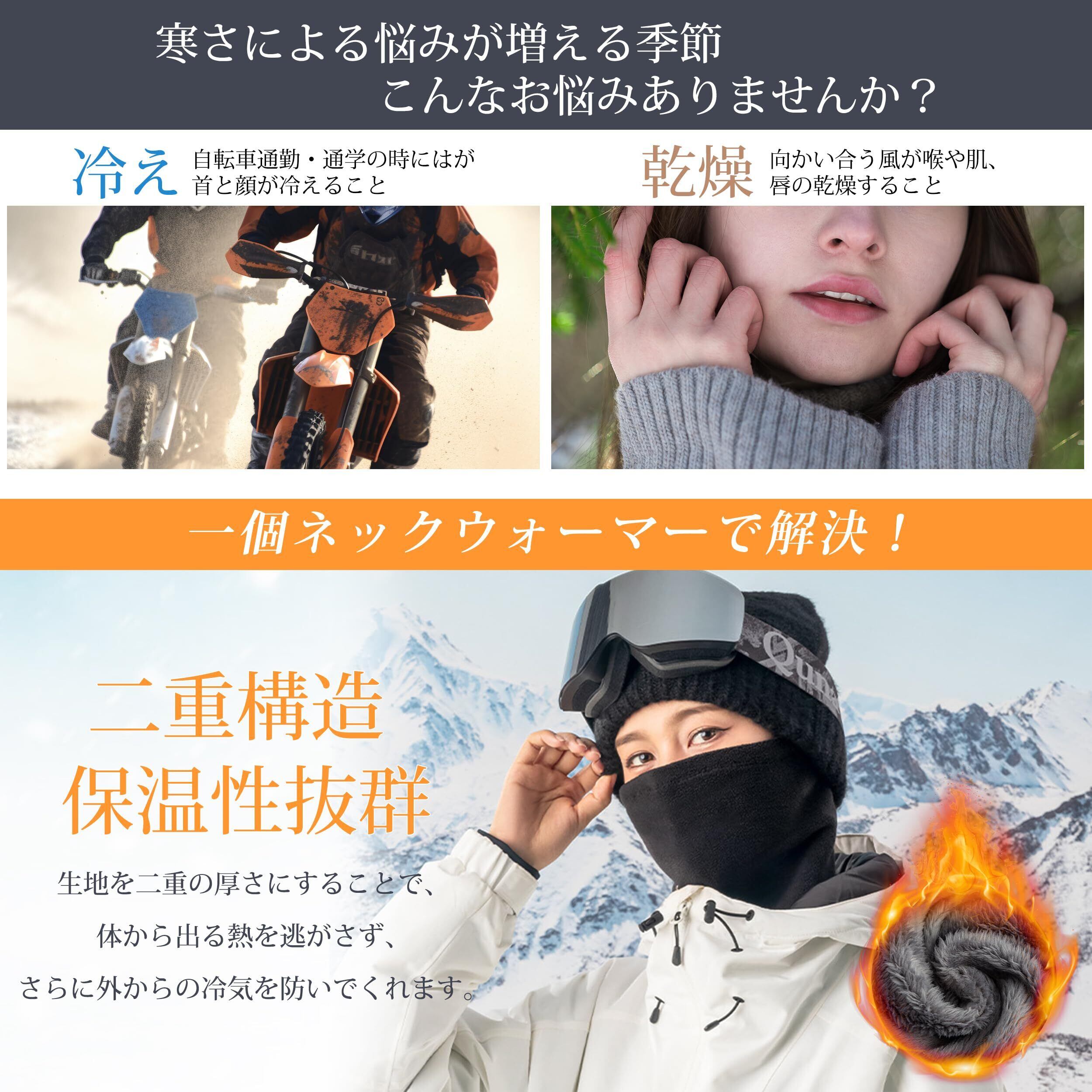 【極上の柔らかさ・快適使用感】表地には柔らかなポーラーフリースを使用し、裏側にはふわふわでもこもこな裏起毛素材を採用しています。雲のように滑らかな肌触りで、首元に比類なき快適さを提供します!敏感な顔に当たってもチクチクせず、暖かさと心地よさを実感できます。厳冬を心地よく過ごしましょう!
