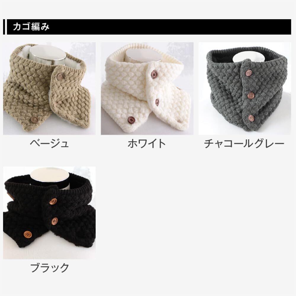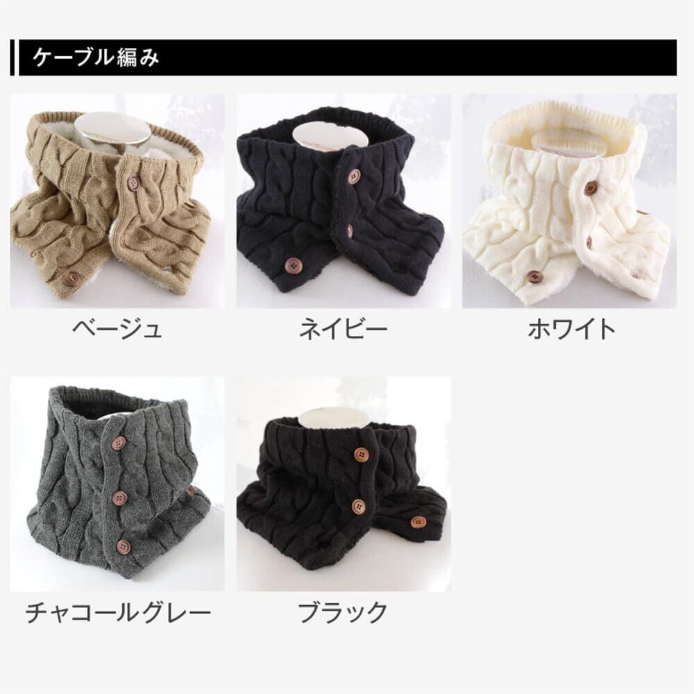【2022最新】[GlovesDEPO] あったか裏ボア ボタン付きネックウォーマー ケーブル編み&カゴ編み