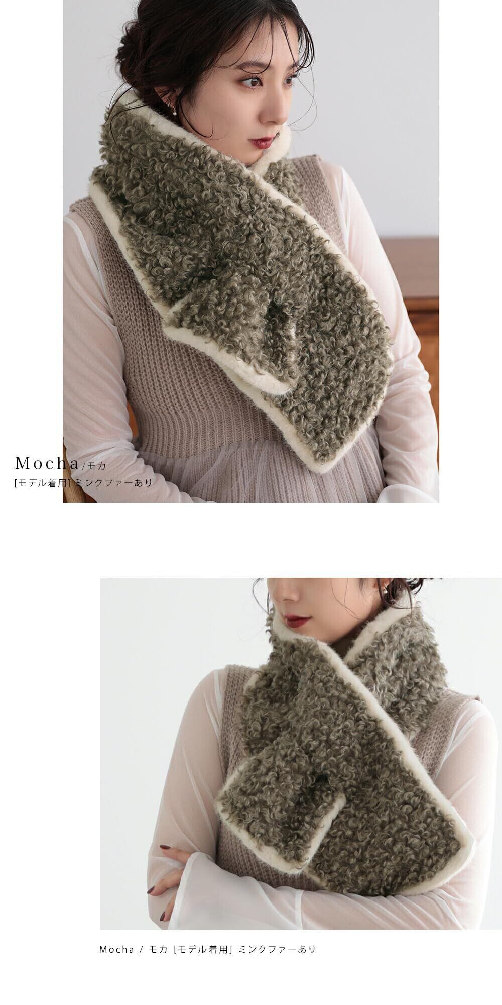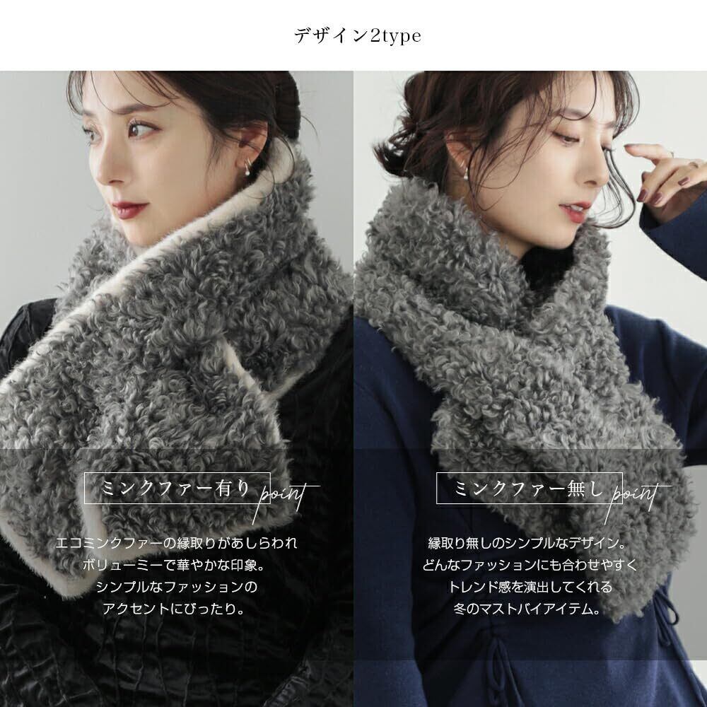 [Little&More] フェイクムートンボアスカーフ ティペット マフラー 大きい ストール シープボア レディース 防寒 ネックウォーマー 小顔 ショール
