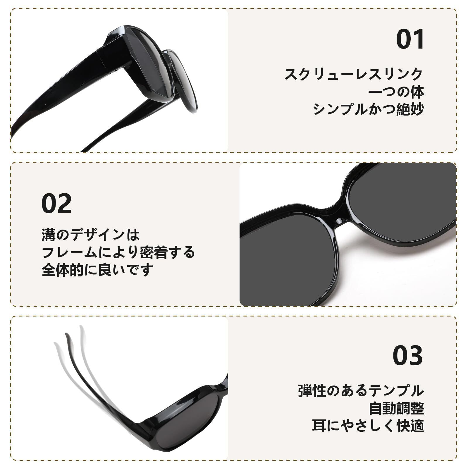 【眼鏡着用者の福音書&大きめ対応】オーバーサングラスとはメガネの上に掛けられる機能的なサングラスです。メガネの上からはもちろん 、メガネなしでも直接掛けることができます。いろいろなサイズのメガネに合うために、レズン特大なTAC偏光を採用しました、近視、遠視、老視の眼鏡かけた人もご利用できます。二重メガネ(メガネ+サングラス)を掛けても、違和感がなく、逆に掛ける人がおしゃれなオーラがさしているようなかっこいいサングラスです。